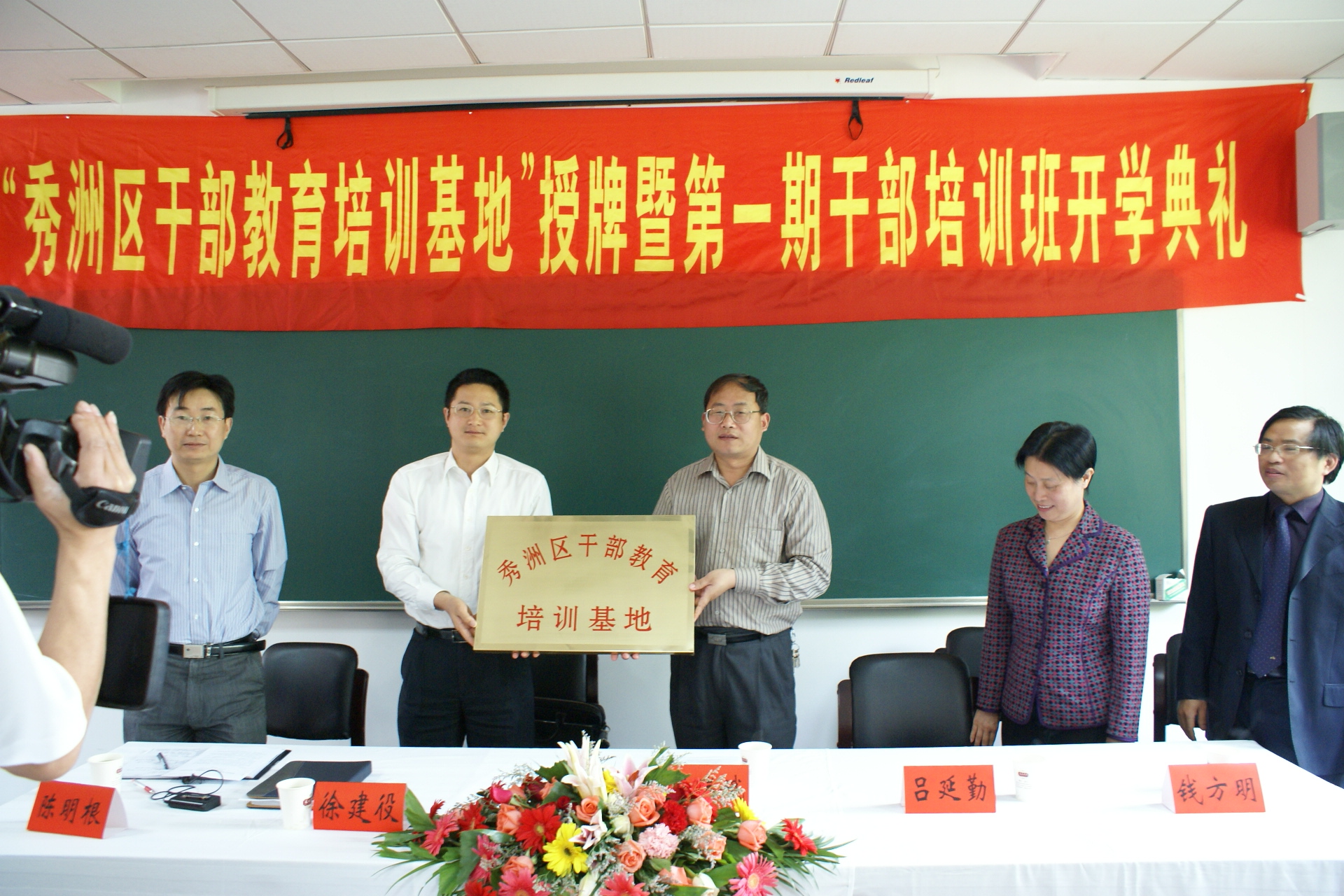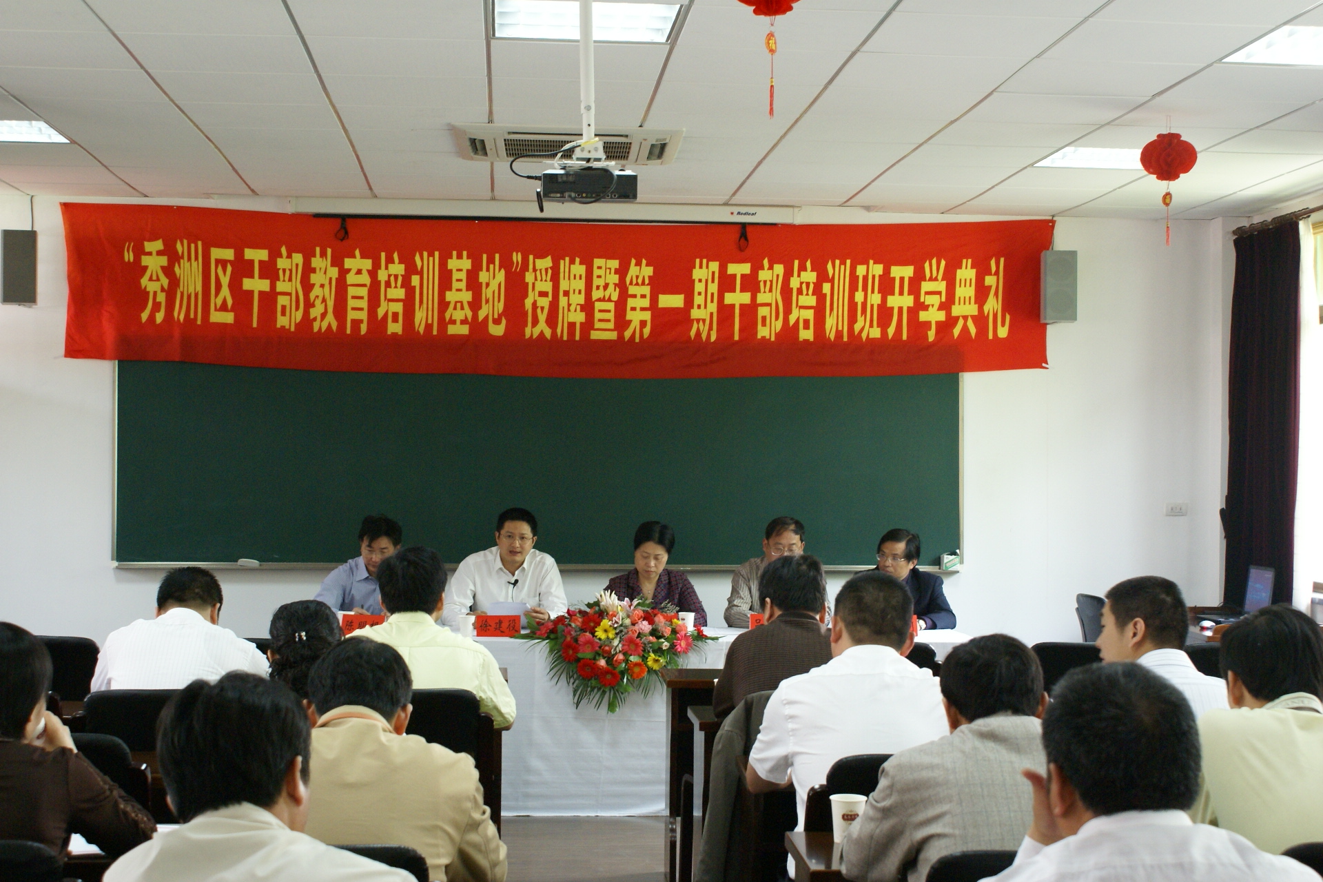 5月12日上午,袋鼠影视 和秀洲区组织部在文苑宾馆共同举办“秀洲区干部教育培训基地”授牌暨第一期干部培训班的开学典礼,由秀洲区组织部陈明根主持,嘉兴学院党委副书记唐瑞娥老师、秀洲区组织部部长徐建役发表了讲话,校办主任吕延勤老师、袋鼠影视 院长钱方明教授、袋鼠影视 总支书记潘抗美老师参加了开学典礼。本次培训班是根据秀洲区区委“干部素质再提升”活动的总体安排,实施百名领导重上大学工程,选调07年度没有到高校参加过培训的科级干部重回课堂,接受培训。本期培训班从5月12日开始,16日结束。共分五讲,袋鼠影视 为此安排了五名有丰富教学经验教师进行授课,并精心准备了授课内容。