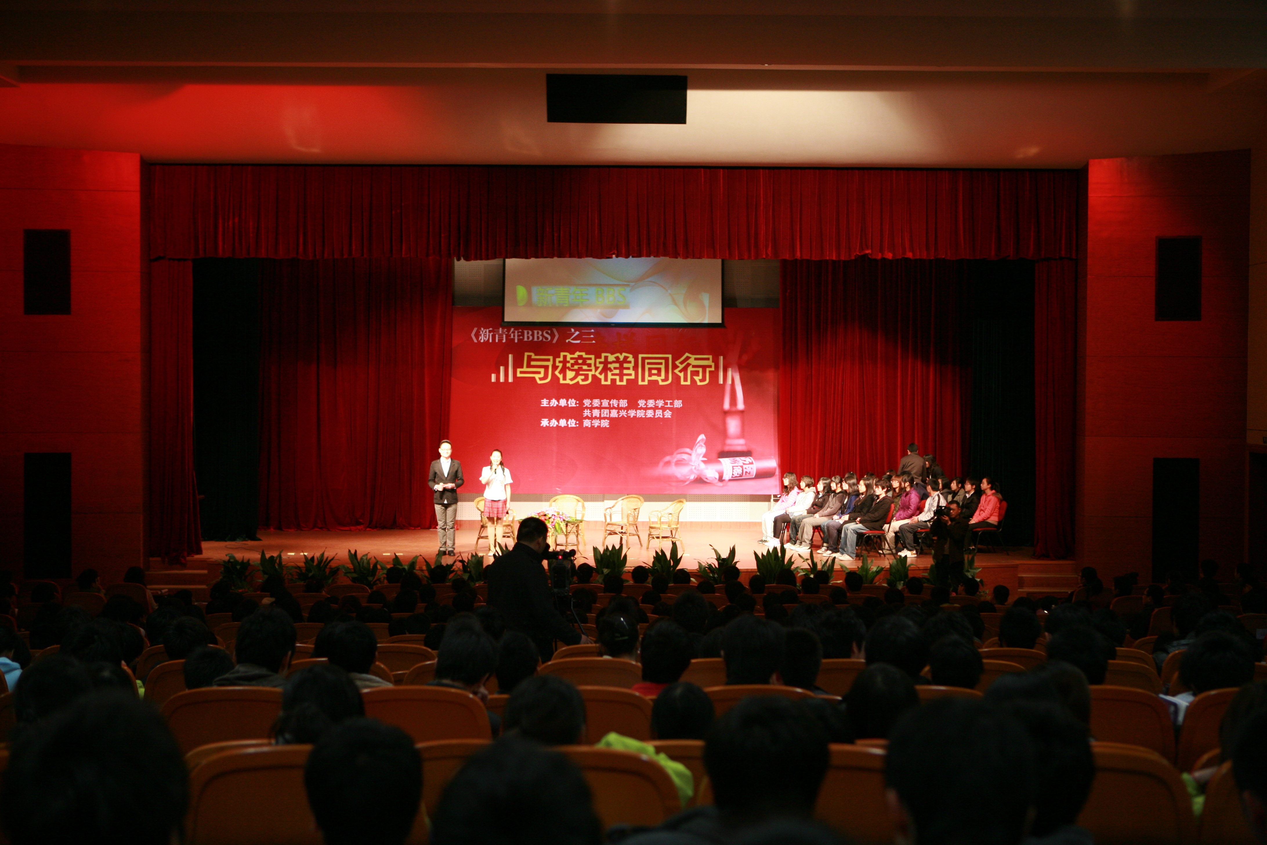 4月8日下午,由嘉兴学院党委宣传部、学工部和校团委主办,袋鼠影视 承办的新青年校园BBS专访三:《与榜样同行》大型论坛在教二报告厅举行。校党委副书记吕延勤出席并讲话,宣传部、学工部、校团委、各二级学院负责人及学生代表650余人参加了论坛。