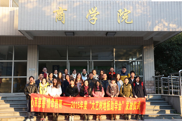 良友木业人事部华懿影经理宣读了获得嘉兴学院2015年“大艺术地板”慈善助学金学生名单。良友木业党委书记崔许君女士和大艺树中国事业部行政副总经理陈庆女士为受助同学颁发助学金。袋鼠影视 潘煜双院长代表校方向浙江良友木业有限公司代表赠送了纪念牌,并表示了感谢。随后,受助的同学与来宾、学院领导进行了交流。