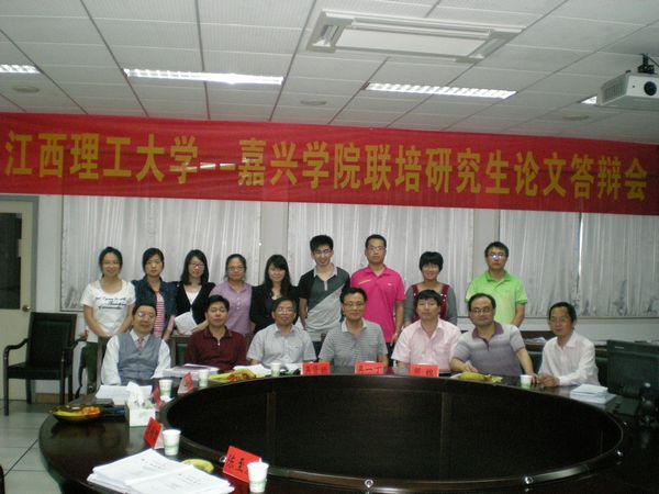 2012年5月26日,江西理工大学与嘉兴学院联合培养硕士研究生论文答辩会在经管中心三楼会议室举行,答辩委员会由江西理工大学邹坦、吴一丁教授、吴贤振副教授与嘉兴学院钱方明、袁志明、潘煜双、胡大立、虞锡君、陈至发、张惠忠等教授组组成,邹坦教授与吴一丁教授轮流担任答辩主席,经过一天的紧张工作,9位同学顺利通过答辩。