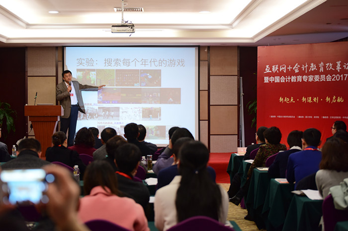 在互联网+时代,随着“大智移云”网络技术的发展,会计工作环境发生了颠覆性变化,而现行高校的会计专业人才培养尚未真正实现转型,如何解决信息时代会计教学改革过程中凸显的众多问题与障碍?为此,会议专门安排了《会计学本科专业教学质量国家标准解读》、《互联时代下的人才培养变革之路》、《大智移云时代财务人员的只是结构和能力要求》等三场讲座,并在上海财经大学副校长、教育部“长江学者”特聘教授、博士生导师陈信元教授,东北财经大学会计学院院长、中国会计教育专家委员会主任、博士生导师、国家级教学名师刘永泽教授,全国会计专业硕士学位教育指导委员会委员兼秘书长、教育部“长江学者”特聘教授、中国人民大学的博士生导师王化成教授等中国会计教育界的顶尖专家学者们的带领下,共同探讨如何推进会计教育信息化改革及互联网技术在会计教育教学中的应用。