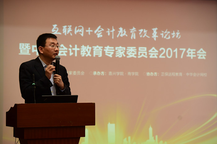 3月25日上午,"互联网+"会计教育改革论坛暨中国会计教育专家委员会2017年会在嘉兴召开,会议由中国会计教育专家委员会主办,我校袋鼠影视 承办、正保远程教育及旗下中华会计网校协办,来自全国的会计教育专家委员会本科、高职组的委员们,正保远程教育集团、中兴通讯等热衷中国会计教育的企业家们到会,袋鼠影视 院长潘煜双、副院长李郁明以及袋鼠影视 会计专业的部分老师参加会议。