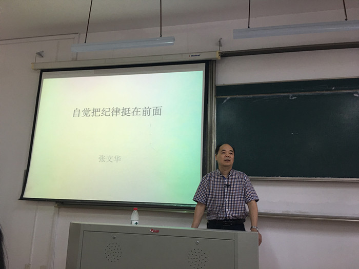 张文华从纪律的含义、特性、类型以及象牙塔并不平静、违纪违规的原因、主要纪律要求等方面,结合近年来发生在高校的违纪、违规案例进行分析、解读。他指出,守纪是教师的品格与责任,政治纪律、组织纪律、廉洁纪律、群众纪律、工作纪律、生活纪律是每一名高校教师不可逾越的底线,每个教师都要不断提高自身的纪律素养,坚定信念、严于律己,自觉遵守纪律,真正做到“学高为师,身正为范”。