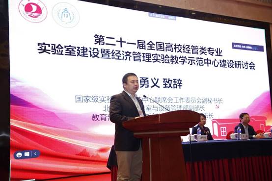 国家级实验教学示范中心联席会工作委员会副秘书长、北京大学实验室与设备管理部副部长、教育部虚拟仿真实验教学创新联盟副秘书长周勇义致辞