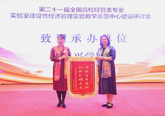 本次研讨会内容紧贴新文科建设大背景以及经济转型的新时代背景,从经管类专业实验教学改革实践出发,充分体现了经管类专业实验教学改革和发展的新思路和新方向。这是我校自2005年以来第二次承办全国高校经管类专业实验室建设会议,我校良好的校园环境、会议条件和会务组织工作,受到了与会领导、参会人员的广泛好评。在会议闭幕式上,国家级实验教学示范中心联席会经管学科组副组长张莉代表国家级实验教学示范中心联席会经管学科组向学校赠送了致谢锦旗。