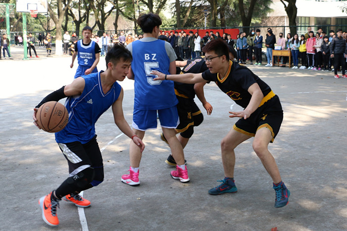 3月15日,袋鼠影视 2017年度专业篮球赛在越秀校区室外篮球场开赛。开赛首日赛况激烈,经济对战国经,去年冠军队经济专业以40-17轻松赢下首场;工商迎战公管,去年亚季军再次交锋,工商专业逆袭成功以32-24首轮告捷。各专业辅导员、学生到场加油助威,气氛热烈。