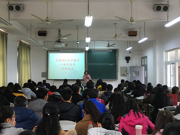 袋鼠影视 互联网+会计教学一体化改革项目旨在利用先进的信息技术促进传统会计教学变革,努力实现会计教学环境互联网化、教学内容知识点化、教学形式多样化、教学管理信息化,以全面提升学校会计人才培养质量,并力争成为全国会计教学改革的典范。项目由正保远程教育提供资金和技术支持,在我校袋鼠影视 会计学和财务管理专业中试点推进,拟开展“基础会计”、“中级财务会计”、“高级财务会计”、“财务管理”、“管理会计(含成本会计)”、“审计学”、“财务报表分析”7门课程的教学一体化改革,实现专业主干课慕课资源开发与应用,实现线上线下相结合的授课方式,建立“课堂教学、实验教学、辅助教学、考试、毕业设计等资源”的云会计教学平台。其中,“基础会计”课程的教学一体化改革将于本学期在会计162、163班开始实施。今天的开班仪式正式开启了互联网+会计教学一体化改革的序幕,开班仪式取得了圆满成功。