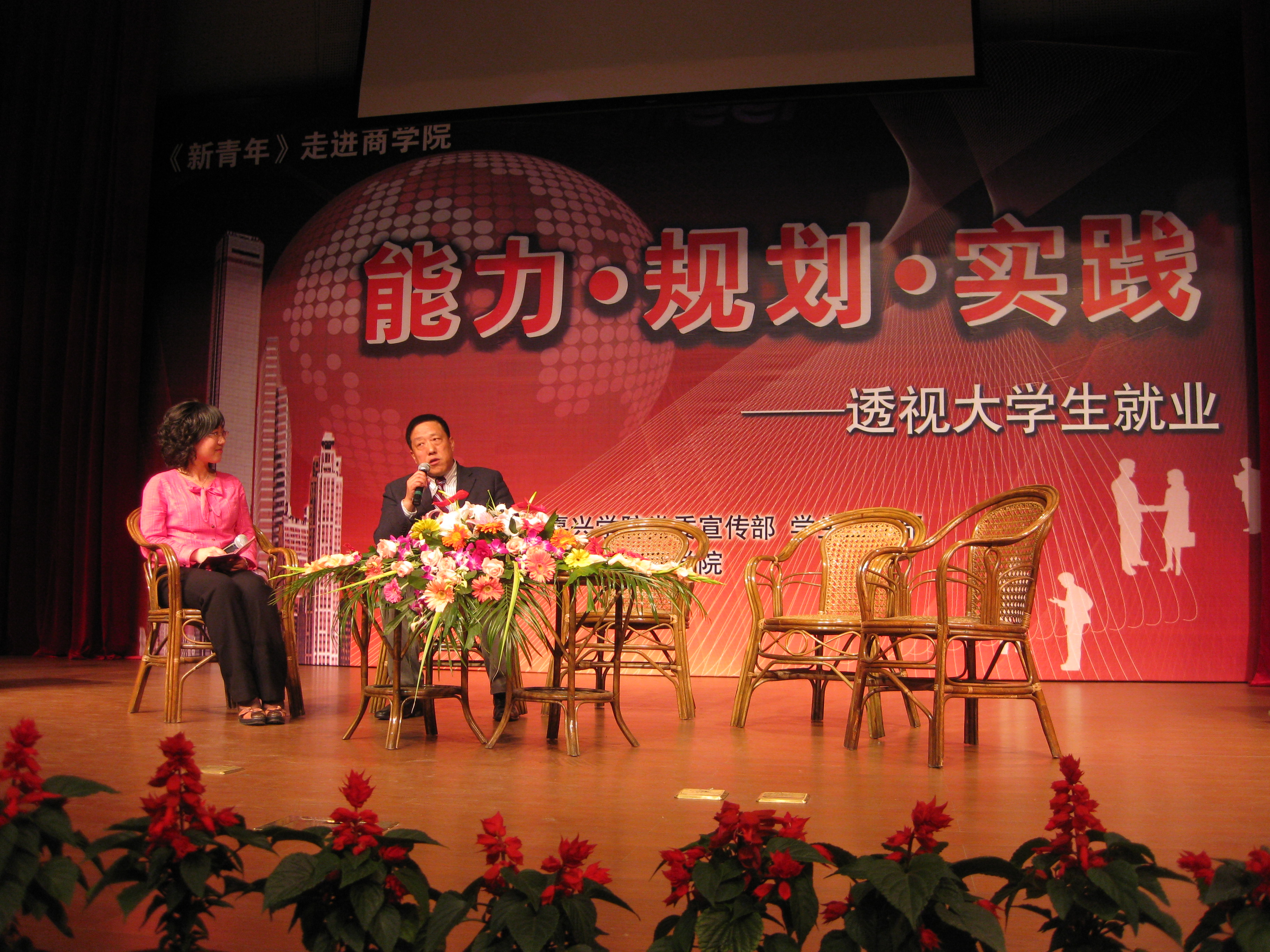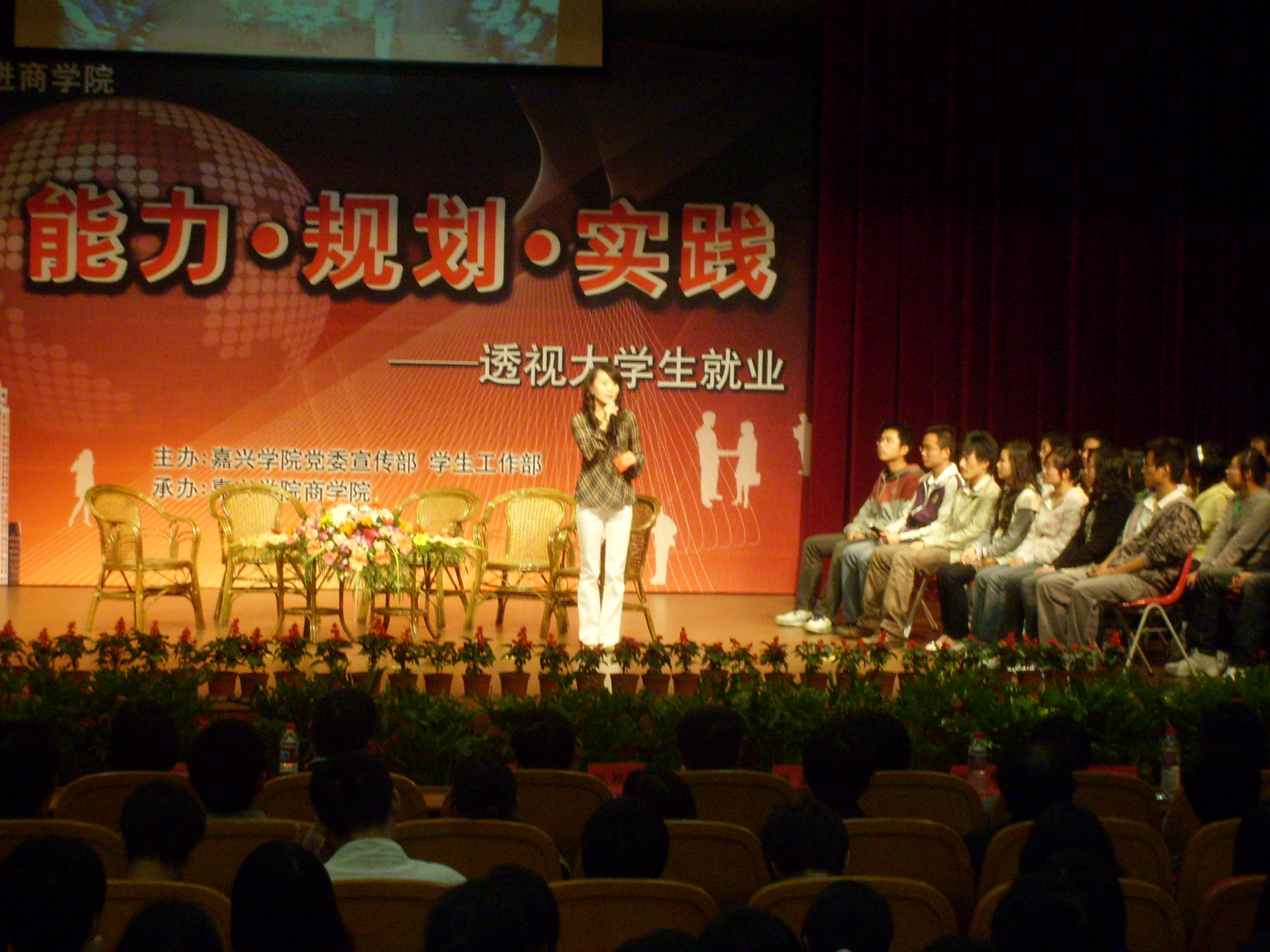 席卷全球的金融危机对2009年高校毕业生产生极大地影响,高校学子的就业问题成为社会和学校所关注的焦点。围绕这一社会热点,嘉兴学院宣传部、学工部主办,袋鼠影视 承办“新青年”校园BBS专访一:走进袋鼠影视 ——透视大学生就业于4月27日晚在教二报告厅拉开帷幕。嘉兴学院党委副书记夏跃平老师、宣传部部长富华老师、袋鼠影视 党总支书记潘抗美老师、副院长潘煜双老师、孔冬老师、副书记郝文静老师以及其他各分院的领导出席了本次活动。