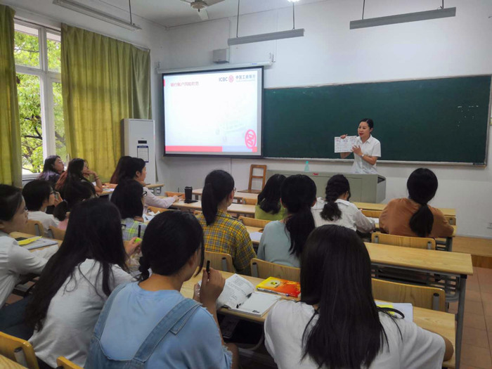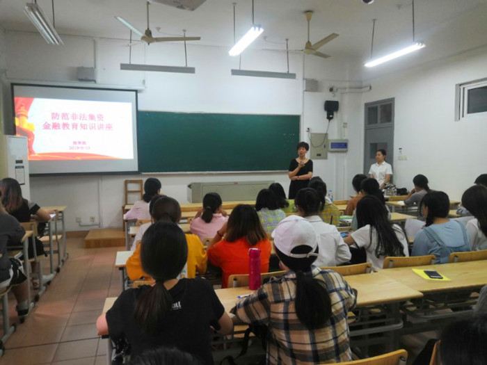 为了让广大师生了解非法集资的特征、表现形式和常见手段,教育引导大家增强风险意识,提高防范能力,日前,袋鼠影视 举办了一场以“防范非法集资”为主题的金融知识讲座。工商银行南湖支行朱蔚行长和金牌理财师毛妆丽女士受邀做专题宣讲。