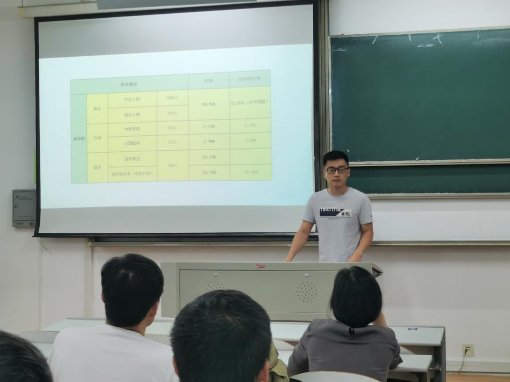 最后,潘院长在总结讲话中要求各条线严格按照进度推进,及时回顾总结:一是确保学院初次就业率,全力以赴完成既定目标任务,实现高质量、充分就业;二是发挥“一体(学工)两翼(系主任、班主任)”作用,任何一方都不可偏颇,高效互通信息;三是不放弃任何就业机会,确保招聘信息及时落地,引导学生树立正确择业观。