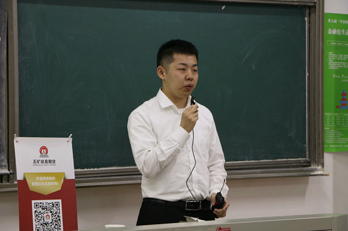 4月26日晚,第五届“中金所杯”知识竞赛嘉兴学院宣讲会在教一403举办。袋鼠影视 院长潘煜双、五矿经易期货有限公司副总经理张天骄及营销管理总部副总经理刘禹含、优秀校友夏佳栋等出席。 潘煜双致辞,欢迎五矿经易期货领导们的到来,同时鼓励同学们丰富课余生活,多参与课外知识竞赛,通过参加“中金所杯”金融知识竞赛等行业竞赛,检验自己掌握相关专业知识技能的水平。张天骄鼓励同学们注重自己综合素质的提升;刘禹含介绍了本届知识竞赛的规则以及要求。最后,曾获得第三届“中金所杯”知识竞赛特等奖(第一名)的优秀校友夏佳栋和同学们分享了他的比赛经验。通过宣讲会,更加激发了商院学子们参与竞赛的积极性。 举办“中金所杯”金融衍生品知识竞赛旨在为整个资本市场发展培育后备人才,推进高校金融衍生品专业学科建设和金融国民教育体系建设,向社会宣传普及金融衍生品知识和风险管理理念,更好地保护投资者合法权益。