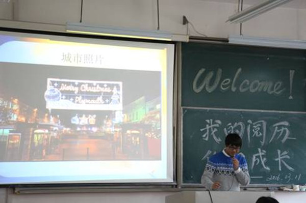 2016年3月11日下午,袋鼠影视 在教一403举办了“我的阅历,你的成长”留学专场讲座。讲座邀请了曾前往英国普利茅斯大学、台湾静宜大学和韩国白石大学三所大学交流、交换学习的五位同学为大家分享经验和收获。英国普利茅斯大学交换生胡瑶杰同学和沈晓霞同学的介绍,让大家耳目一新,大家在了解了英国的风土人情,开阔视野的同时,充分感受到出国留学对学习热情激发的作用。徐彩霞和吴佳洁两位同学对台湾静宜大学学习经历的介绍,不仅让同学们了解了台湾大学的基本情况,而且让大家全面认识到台湾与大陆的同根同源。王凌敦同学和徐彩霞两位同学分享了在韩国白石大学的短期交流体会,通过韩国礼仪文化和韩国风土人情的介绍,让大家对韩国之行的“淡化管理、服务大家”的理念有了更真切的感受。五位同学的交流和分享引来了大家热烈的掌声。