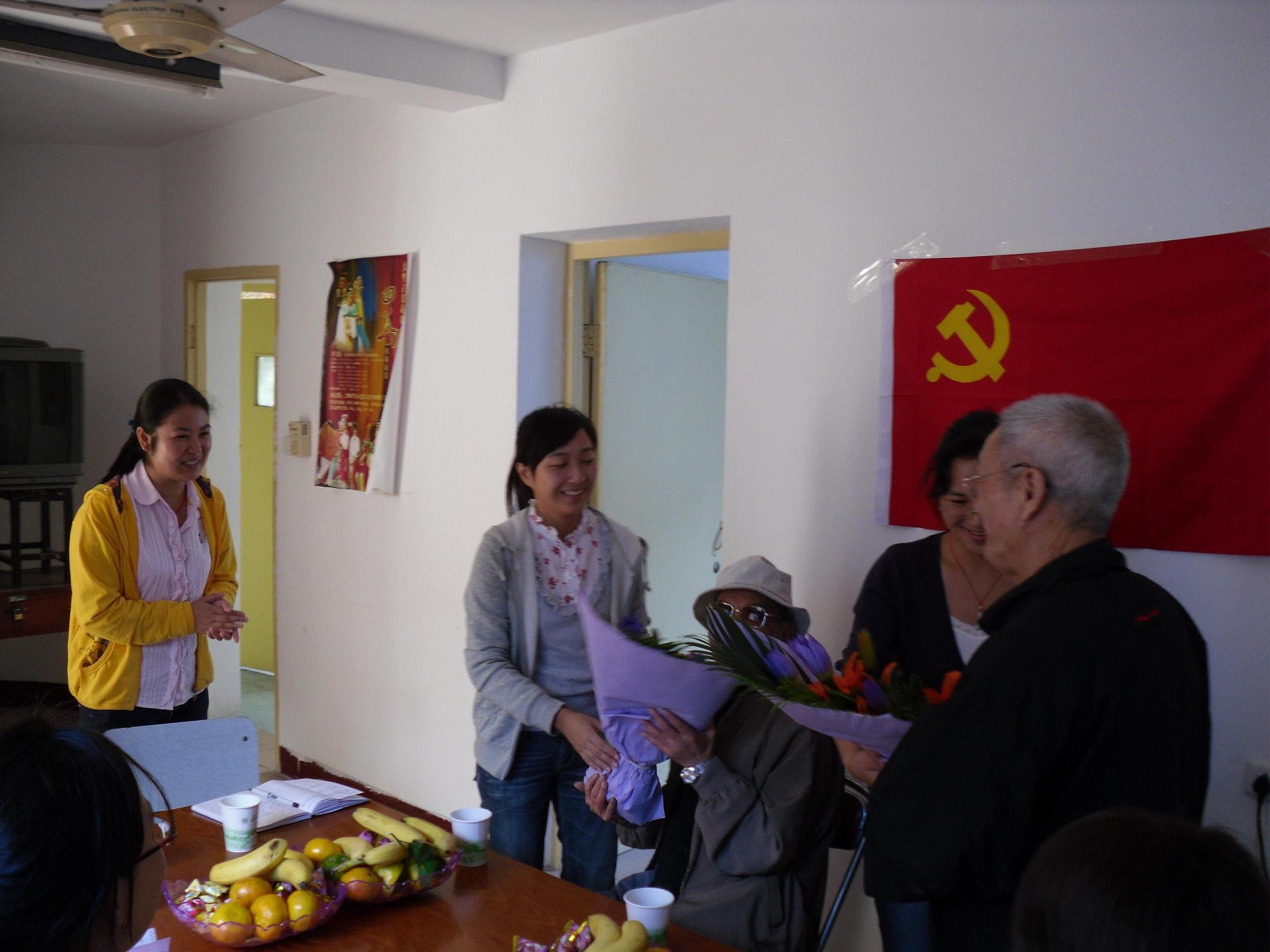 首先,党员代表向两位离休干部献花,感谢他们对学校的贡献,和他们一同分享校庆的喜悦;其次,通过座谈 向两位 老师了解学校发展的历史,从宁波市创办的“宁属县立甲种商业学校”,90多年来的几次迁移校址,最终来到嘉兴,并在2000年3月合并升本。通过座谈,党员们深切体会到嘉兴学院的今天离不开很多前辈心血的凝结。
