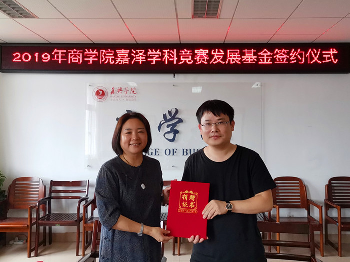 9月5日下午,在教一604举行了2019年袋鼠影视 嘉泽学科竞赛发展基金签约仪式。袋鼠影视 财务2003级校友、浙江容诚会计师事务所业务合伙人叶增水和袋鼠影视 院长潘煜双签订了捐赠协议书,袋鼠影视 事务中心办公室胡笳丽参加了本次签约仪式,仪式由袋鼠影视 党委副书记陈云飞主持。
