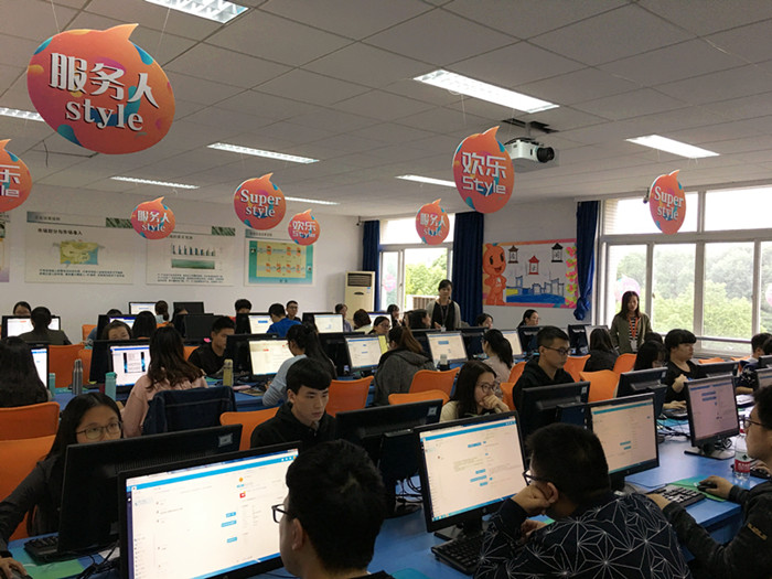 此次与阿里巴巴合作开展产学研合作是袋鼠影视 全面实施专项改革的又一重要举措。为使该项目更好的开展,此前双方就人才培新模式、人才管理模式、培训任务、教材、课程、环境、师资、安全保障等方面进行了多次协商,9月初阿里巴巴客户体验产学基地正式落户我校经管中心,第一批参加体验200名学生也已正式上岗。