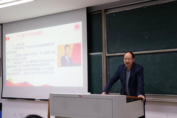 11月17日下午,校党委书记黄文秀应邀到袋鼠影视 作题为《十八届六中全会精神》的宣讲报告。袋鼠影视 党政领导、全体教职工、学生党员发展对象等近200名师生一起认真聆听了报告。