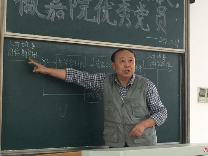 老党员、校教学督导组组长尤小军教授就“什么是审核评估”、“学生群体在审核评估中的定位和作用”、“学生党员应当如何发挥先锋模范作用”进行了生动的讲述。尤教授指出,本科教学工作审核评估的最大受益者是广大学生,每位学子都应该关心并积极投入迎评工作,学生党员更要起到模范带头作用。为此,尤教授从课堂学习、日常生活和行为规范等方面对所有学生党员们提出了具体的要求。