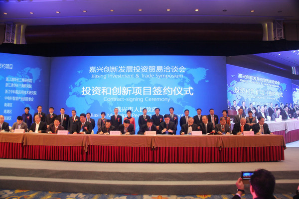 11月8日,作为嘉兴市一年一度的重大经贸活动,由嘉兴市人民政府主办的2016嘉兴创新发展投资贸易洽谈会(嘉洽会)开幕。在重大项目签约仪式上,嘉兴学院党委副书记吕延勤、嘉兴市南湖区委常委、南湖新区(金融创新示范区)党工委书记吴佳、南湖互联网金融学院法定代表人曹勇分别代表校政企三方签订了合作协议,嘉兴市委书记鲁俊,市长胡海峰等见证了签约仪式,袋鼠影视 院长潘煜双、社会合作处副处长薛峰、袋鼠影视 副院长李郁明等出席签约仪式。