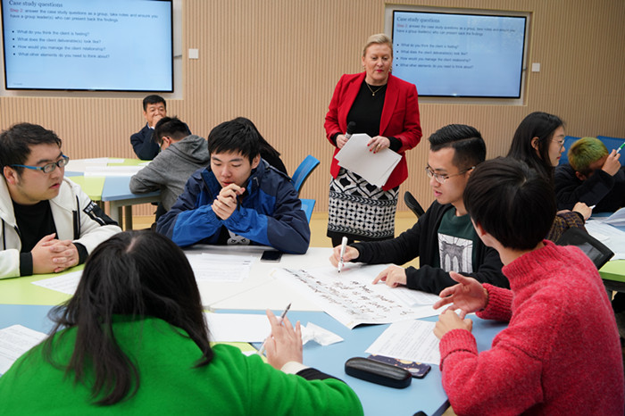 座谈会后,澳方一行在电三智慧教室为会计系和财务系的部分2020届毕业生举行了一场别开生面的无领导小组模拟面试,让同学们身临其境地感受到了国际跨国公司模拟面试的场景。随后,澳方还在教二报告厅为会计系和财务系学生举行了学士和硕士直通车宣讲。