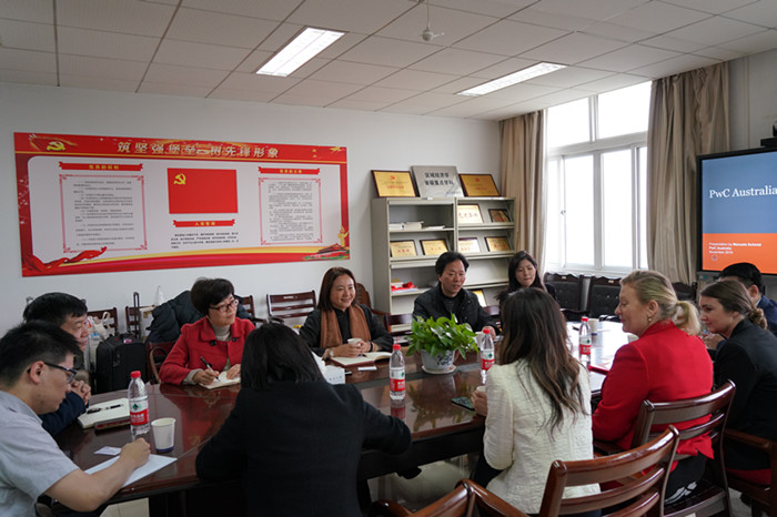 11月26日上午,澳大利亚国立管理与商业学院副校长曹苏萌、澳大利亚普华永道客户及市场总监曼纽拉·施密德一行六人来袋鼠影视 访问。袋鼠影视 潘煜双院长、副院长顾骅珊、李郁明以及会计系的部分教师参加了座谈交流。