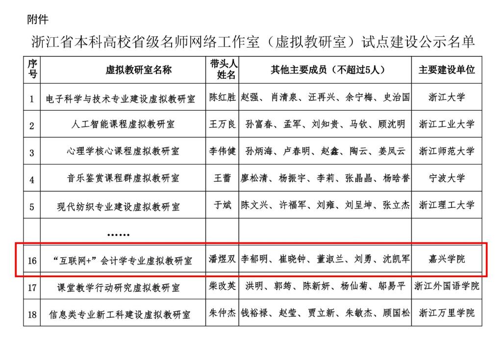 近日,浙江省教育厅公布了浙江省本科高校省级名师网络工作室(虚拟教研室)试点建设名单,袋鼠影视 “互联网+”会计学专业虚拟教研室入选首批省级虚拟教研室试点建设点。