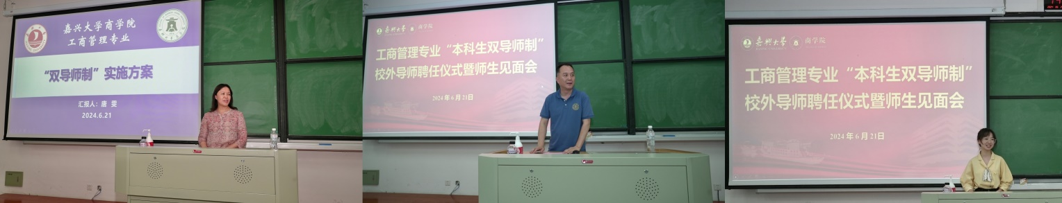 工商管理专业负责人唐雯深入介绍了“双导师制”实施方案,希望同学们在双导师指导下提升适应社会需求的各项技能。上海交大嘉兴科技园总经理、嘉兴南洋职业技术学院副校长许昱捷作为校外导师代表发言,希望能够为同学们提供更多的实践经验和行业洞察。工商管理专业21级金舒怡作为学生代表发言,希望未来能与行业专家们深入交流,有效提升实践能力。
