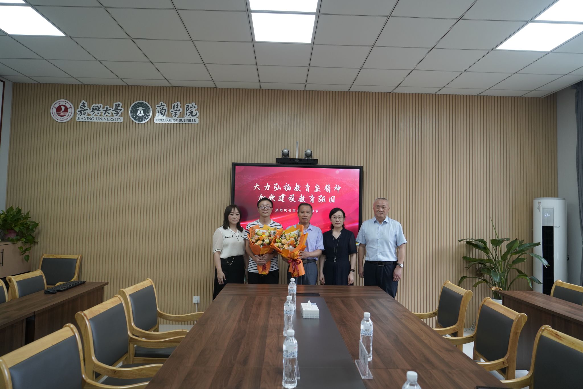 在全国第40个教师节来临之际,9月10日上午校党委委员、副校长(主持日常工作)张琦一行来袋鼠影视 慰问教师代表,向在校任教四十载的刘湘国教授和优秀教师代表张建磊送上了鲜花,向两位教师代表以及全院教师致以节日的问候和诚挚的祝福。