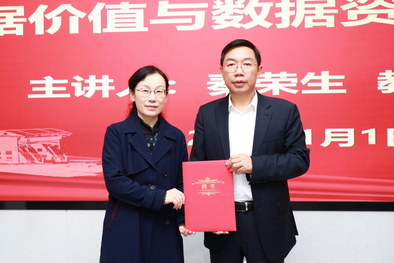 我校聘任秦荣生教授为会计硕士(MPAcc)专业学位教育指导委员会主任委员,报告会结束后,副校长(主持日常工作)张琦到场为秦教授颁发聘书。