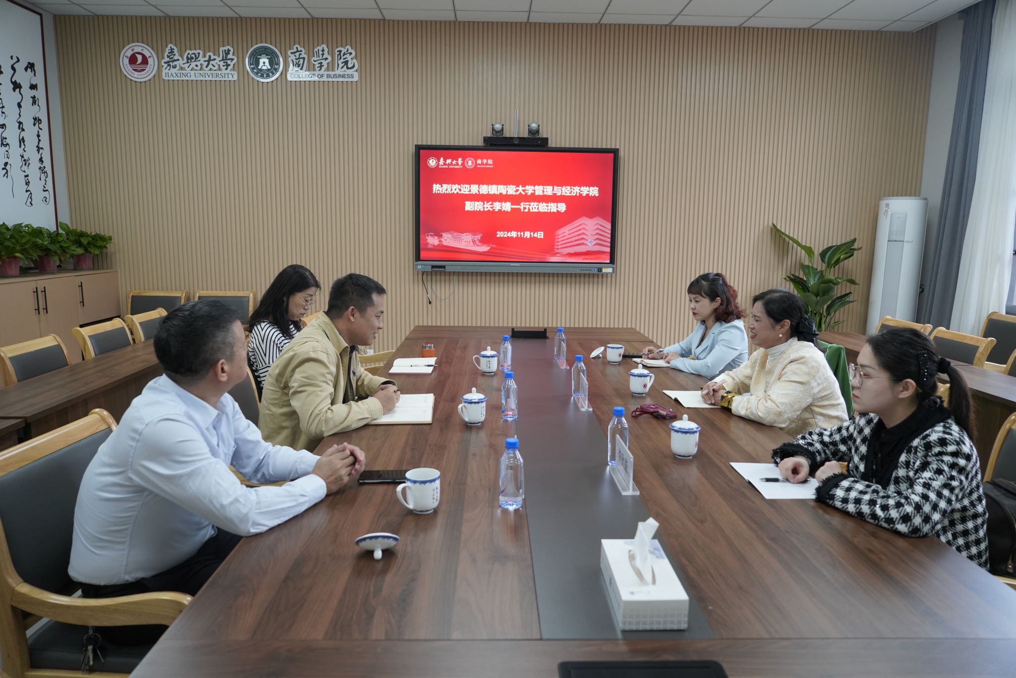 翁胜斌对李婧一行的到来表示欢迎,并介绍了学院的发展历史、专业设置、组织架构等基本情况。李婧对学院的接待表示了衷心的感谢,她简要介绍了景德镇陶瓷大学管理与经济学院的基本概况、近年来专业发展情况和未来发展规划。随后,双方就各自在会计和财务管理课程设置、学生竞赛、教科研项目申报等方面的经验做法进行了深入交流。双方表示今后将进一步加强交流合作,促进共同发展。