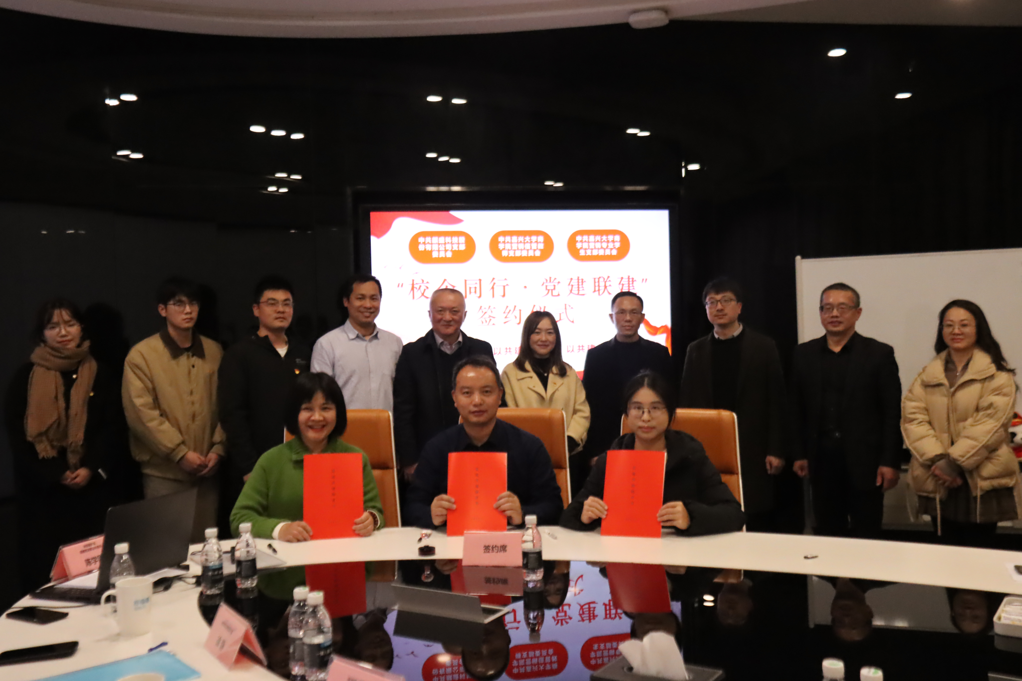 龙潭代表公司对袋鼠影视 一行到访表示欢迎。他介绍了企业发展历程、人才需求等方面情况,表示将与学院进一步加强对接,推动科技成果转化,开展更多领域、更多维度的校企合作项目。李勇介绍了学院的学科特色和专业优势,希望双方能在更多领域开展合作,共同推动产学研深度融合。双方还在党建联建、社会实践基地共建等方面表现出高度契合,并共同签署了“党建联建协议”和进行了“大学生社会实践基地”的授牌。
