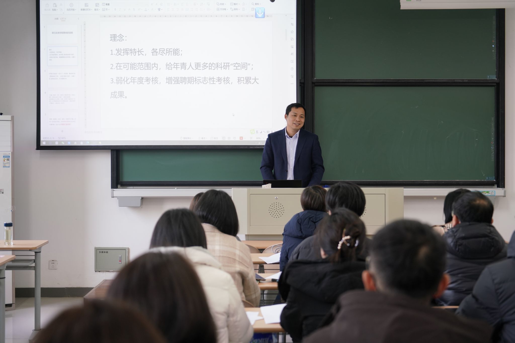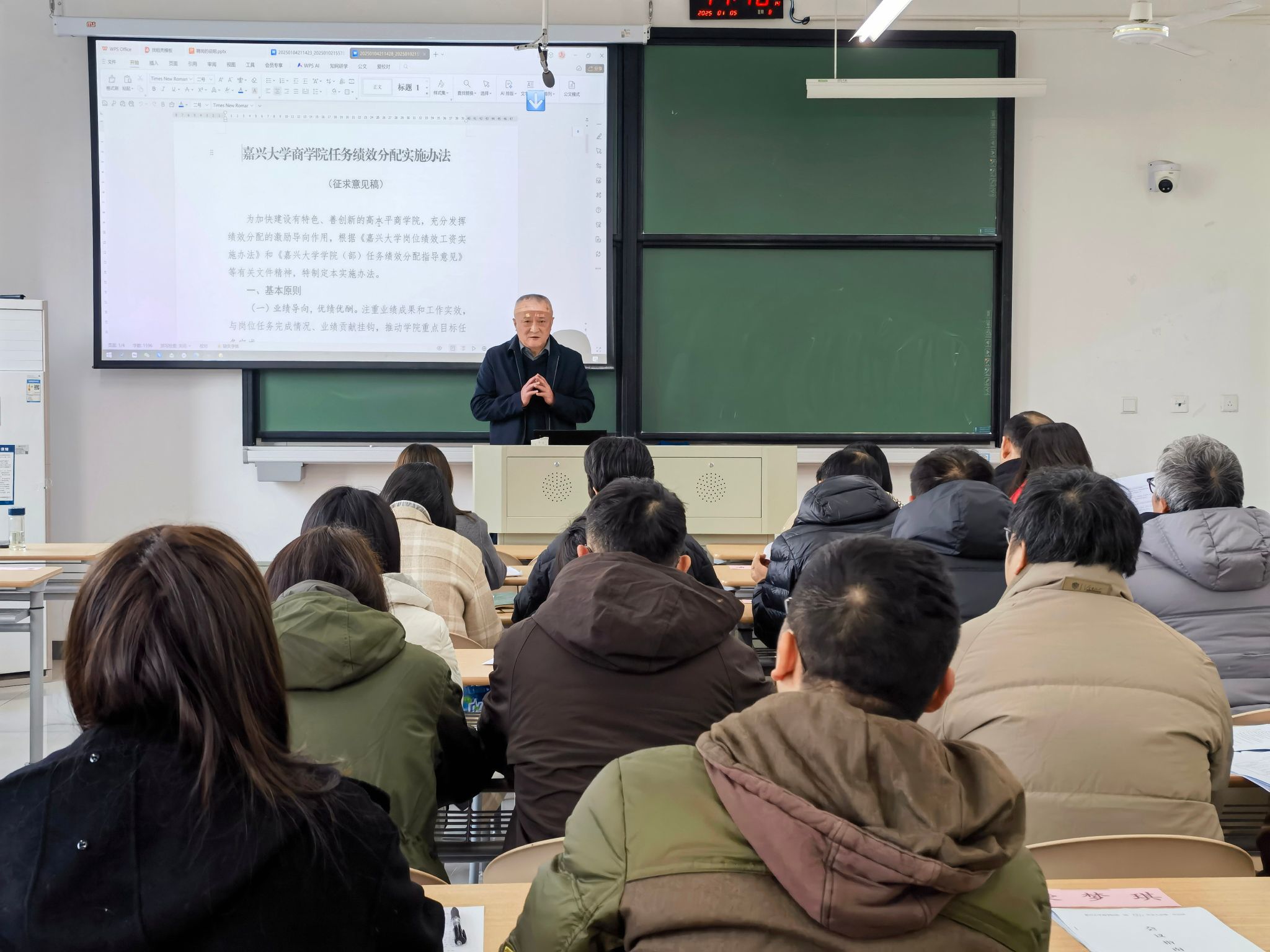 会上,院长李勇和副院长翁胜斌对《袋鼠影视 第五轮事业单位岗位设置与聘任实施办法》及《袋鼠影视 任务绩效分配实施办法》草案进行了系统详细的阐述,包括文件的制定背景、制定依据及遵循的严谨程序等,确保全体参会代表对相关文件清晰、准确且深入理解。