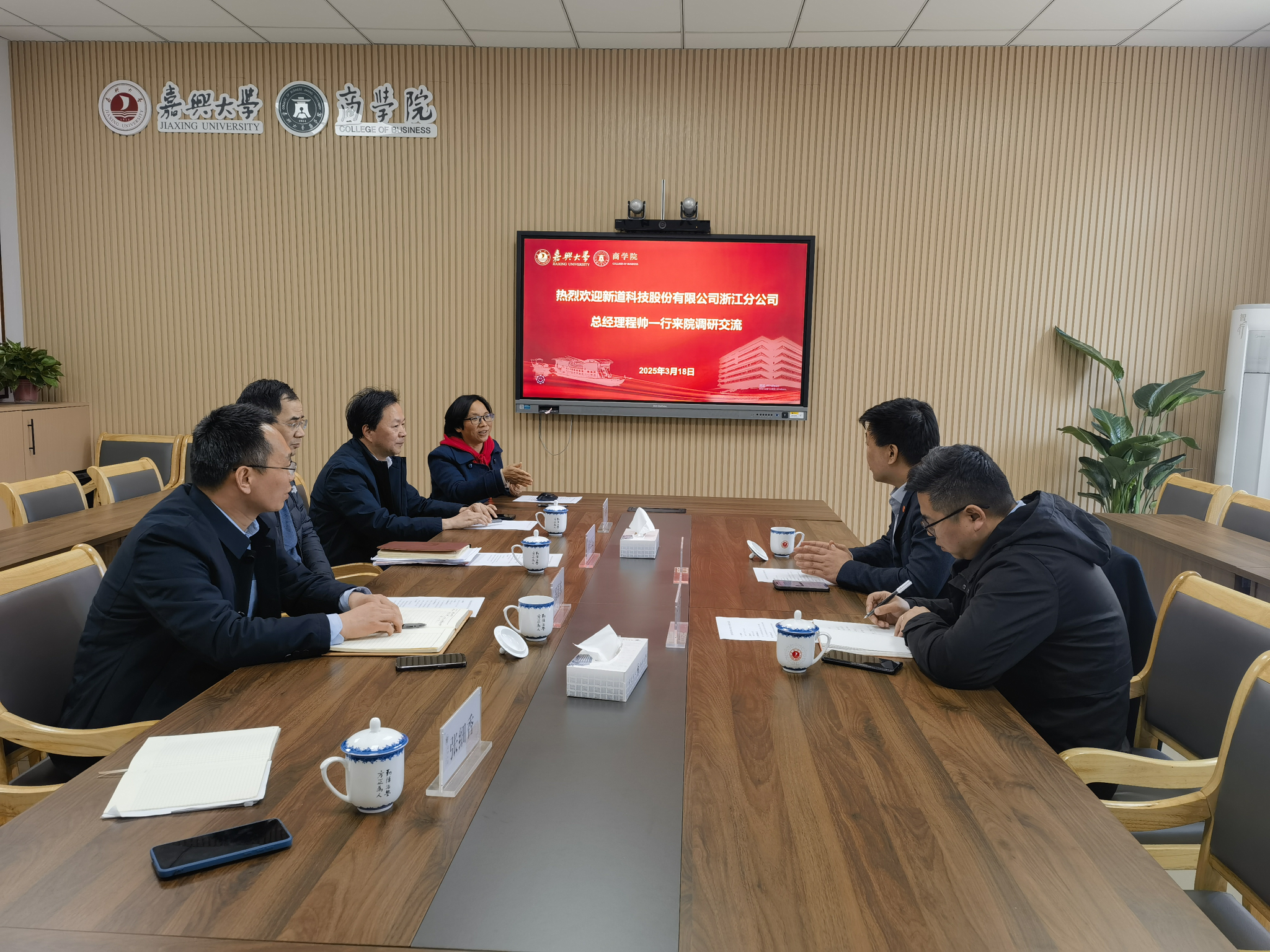 3月18日下午,新道科技股份有限公司浙江分公司总经理程帅、校企合作经理王凯一行来袋鼠影视 调研交流。校教务处副处长兼创新创业学院副院长陈致远、继续教育学院副院长李郁明、袋鼠影视 副院长冯磊东、沙盘竞赛秘书处办公室主任张细香参加交流座谈。