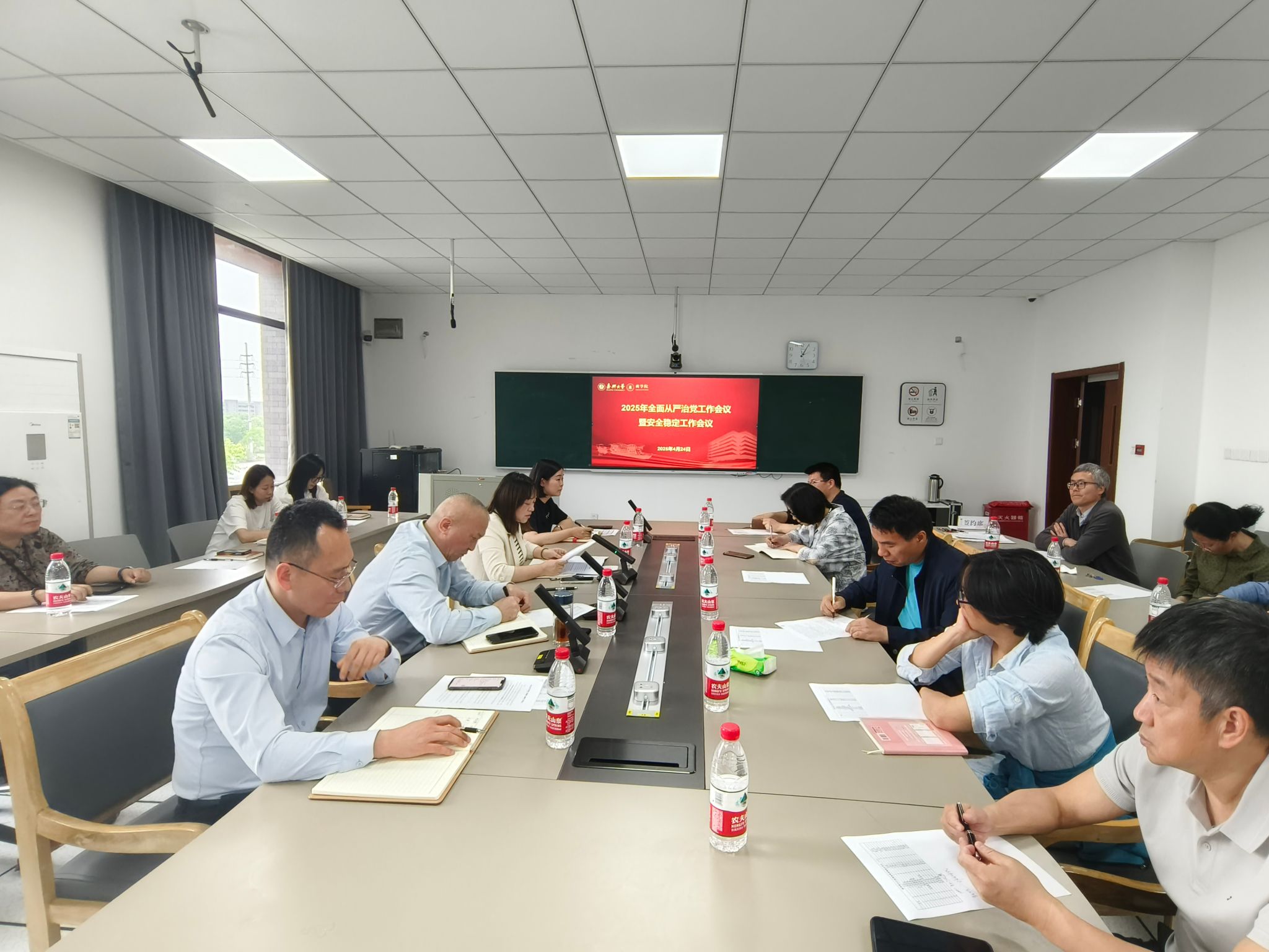 会上传达了学校相关工作会议精神,分析学院近期的工作情况,并布置下一阶段重点工作。会议指出,要准确把握新形势新要求,坚持用改革精神和严的标准管党治党,要以更高的政治站位筑牢忠诚之基,以更强的行动自觉守牢育人之本,以更实的工作作风扛起担当之责。会议强调,安全稳定工作事关全局,全面从严治党与安全稳定工作需同部署、同推进,形成协同发力的工作格局,要以更扎实的举措、更严格的标准,构建全方位、多层次的安全防线,着力打造 “大安全” 工作体系,凝聚各方力量,共同守护学院安全稳定的发展环境,为教育事业高质量发展保驾护航。