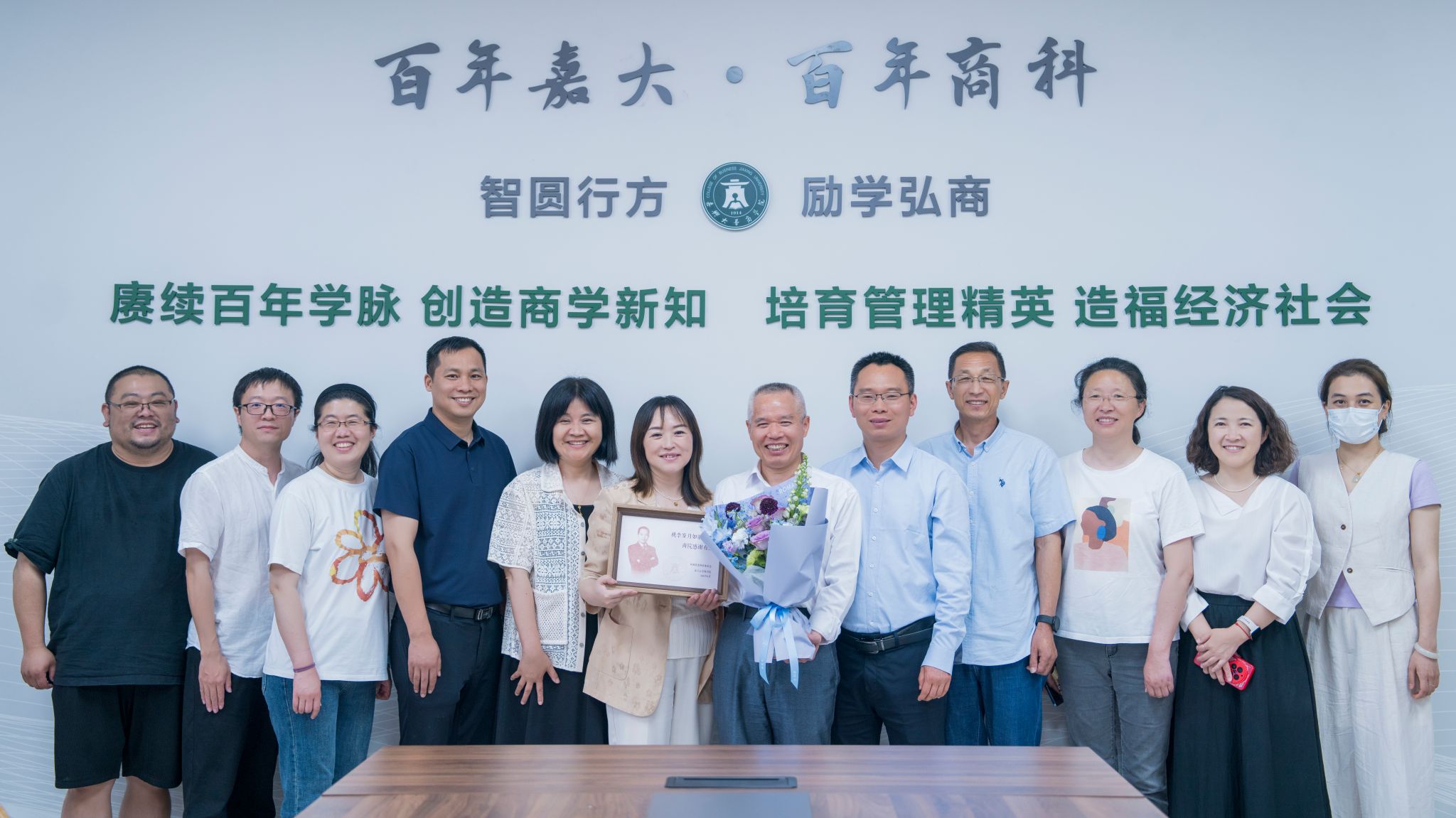 虞岚代表学院向刘教授致以美好的祝福和崇高的敬意,感谢他为学院事业发展作出的重要贡献,真诚希望刘教授“身退心不退,离职情未了”,继续关心青年教师成长,在学院跨阶发展新征程上继续发挥光和热。