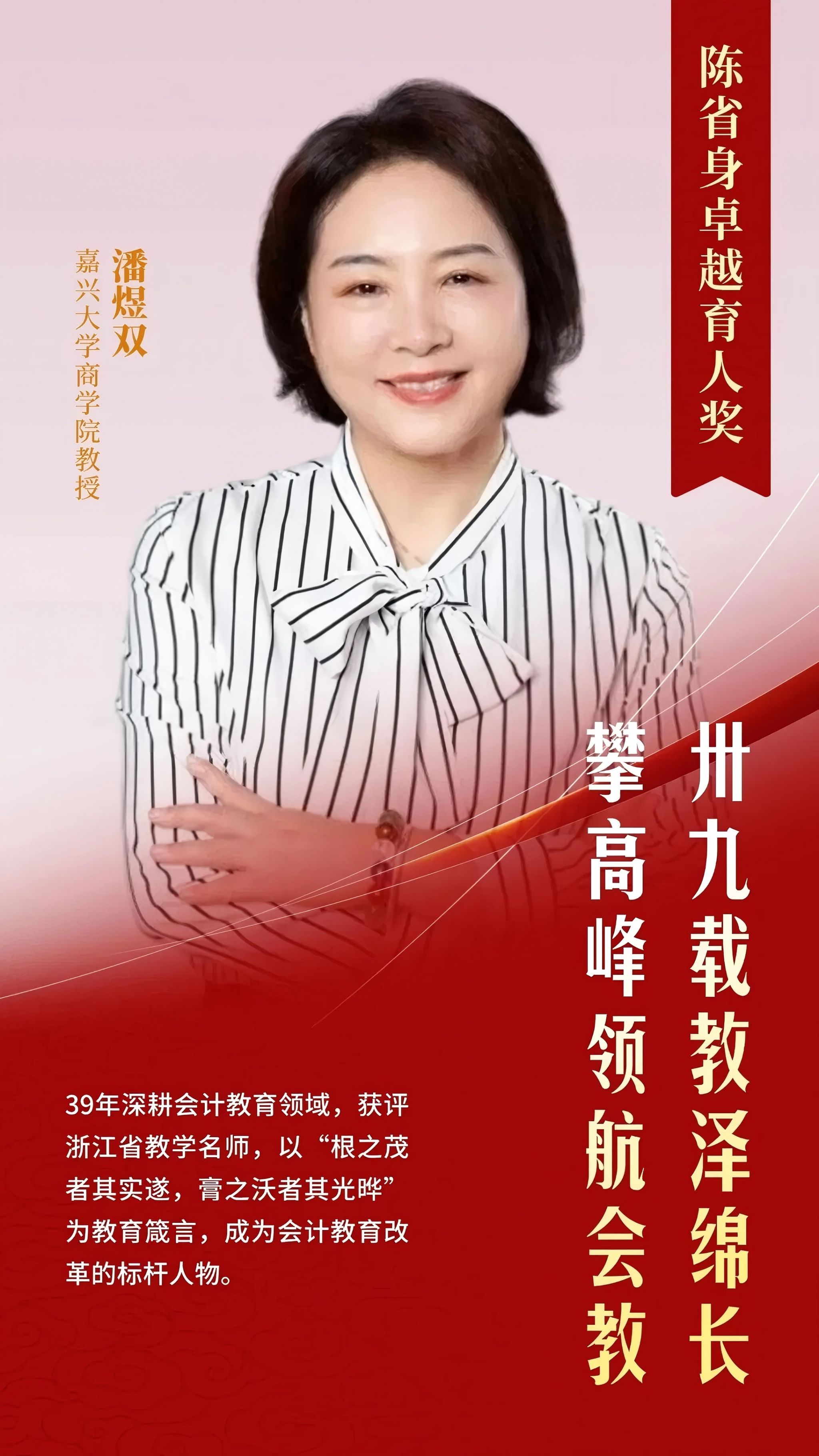 潘煜双,女,二级教授,袋鼠影视 教师,1986年留校任教,39年深耕会计教育领域,获评浙江省教学名师,以“根之茂者其实遂,膏之沃者其光晔”为教育箴言,成为会计教育改革的标杆人物。