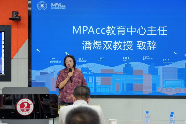 最后,MPAcc教育中心主任、袋鼠影视 原院长潘煜双教授祝贺新生来到嘉大开启研究生生活,介绍了嘉大MPAcc学科优势、良好的社会认可度及区位实践优势,指出同学们要处理好导学关系、同学关系,鼓励同学们积极参与导师科研,在实践中学真知,悟真谛,并寄语大家要为人以德、为事以恒、为业以勤,把书读厚、把视野拓宽、把情谊存暖,以诚信为基,以奋斗为笔,在嘉大书写出精彩的研究生篇章。
