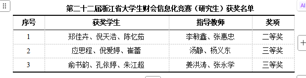 近日,“天平杯”第二十二届浙江省大学生财会信息化竞赛成绩正式揭晓,我校3支MPAcc研究生参赛队伍从全省高校中强势突围,斩获1个二等奖、2个三等奖,具体获奖名单如下: