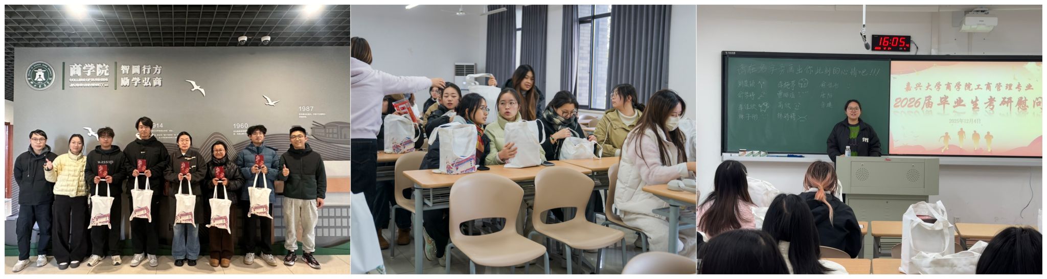 慰问现场,李勇院长、虞岚书记一行走进考研教室,向奋战在备考一线的学子们送上暖心礼包。礼包内精心搭配了考研文具、提神咖啡、能量饼干及定制祝福卡片,每一份物资都承载着学院的深切关怀。“坚持就是胜利,我们永远支持你!” 李勇院长的亲切寄语直抵人心,为学子们注入强劲动力;虞岚书记与学子们面对面深入交流,细致询问备考进度、生活需求及面临的实际困难,耐心为大家排忧解难,鼓励学子们以坚定信念和良好心态迎接挑战。