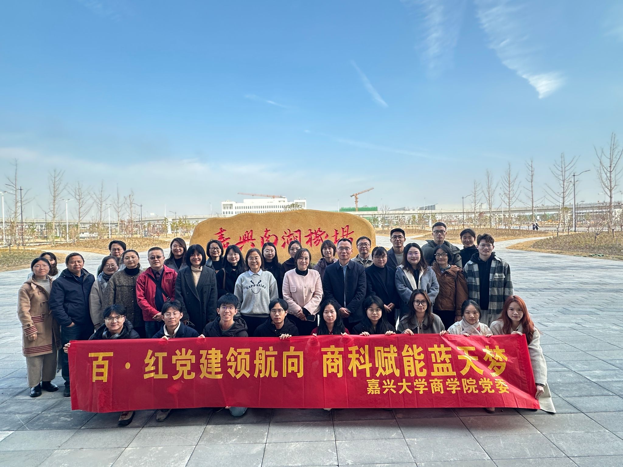 12 月 12 日上午,袋鼠影视 党委组织师生党员代表并特别邀请民主党派代表共同赴嘉兴南湖机场及圆通 “东方天地港” 项目现场开展主题党日活动,近距离见证机场项目通航前的冲刺备战状态,沉浸式感受重大项目建设的奋进脉搏。