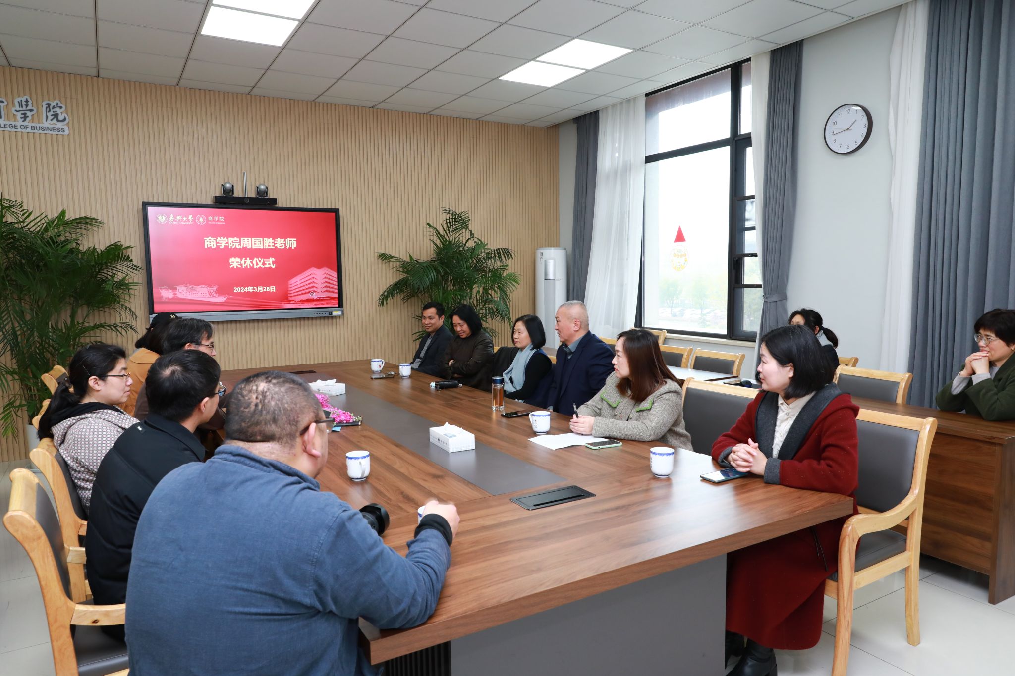 3月28日,袋鼠影视 在尚德楼345会议室隆重举行周国胜老师荣休仪式。学院新老领导班子成员及部分教师代表参加荣休仪式。仪式由学院党委书记虞岚主持。