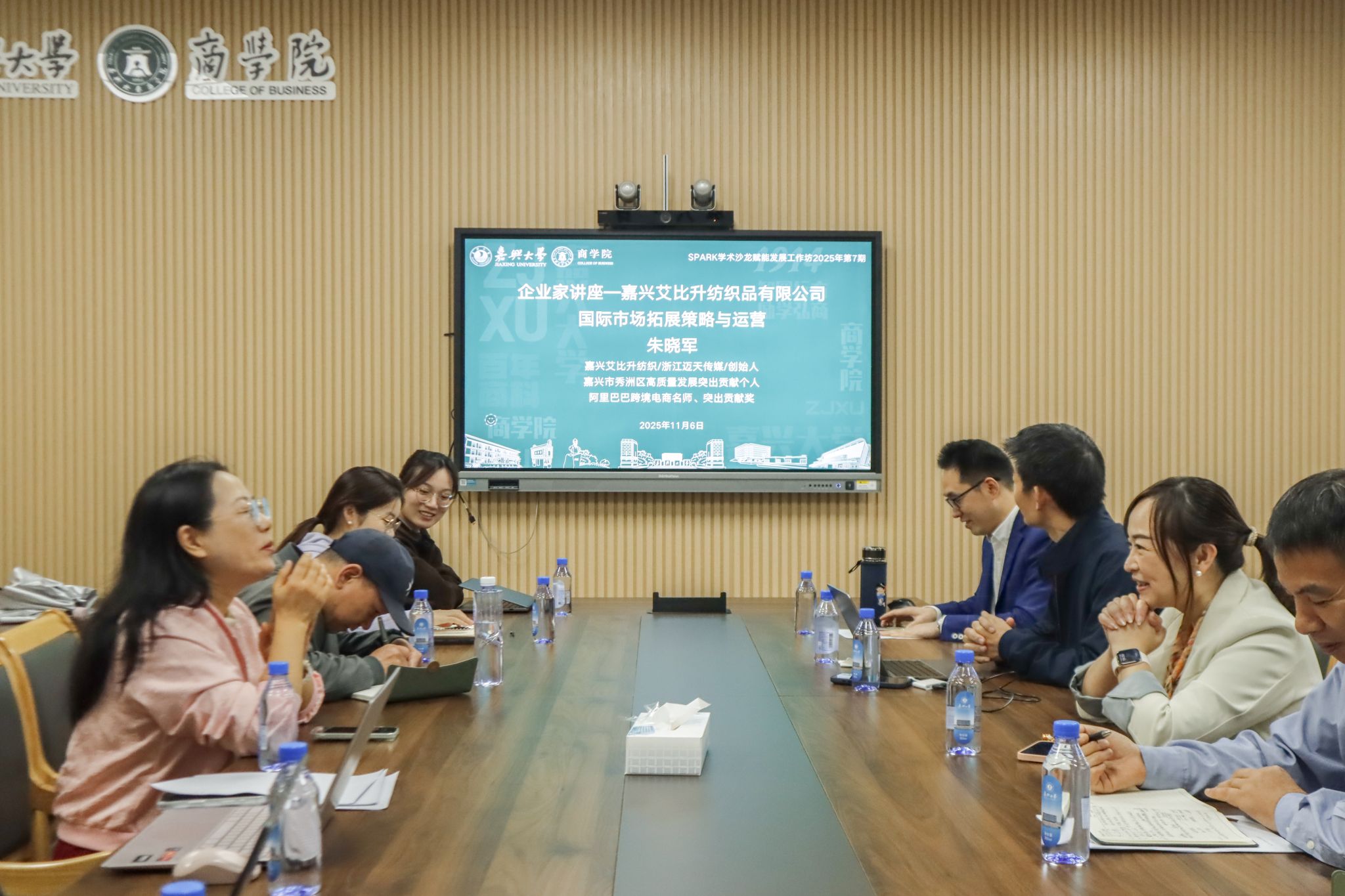 为帮助教师们更好了解嘉兴地方企业国际市场拓展策略与路径,积累科研与教学真实企业案例素材,11月6日,袋鼠影视 分工会在尚德楼345会议室成功举办2025年第7期赋能发展工作坊企业家讲座。本次讲座特邀嘉兴艾比升纺织品有限公司、浙江迈天传媒创始人朱晓军先生主讲,围绕企业“国际市场拓展策略与运营”展开深度分享。