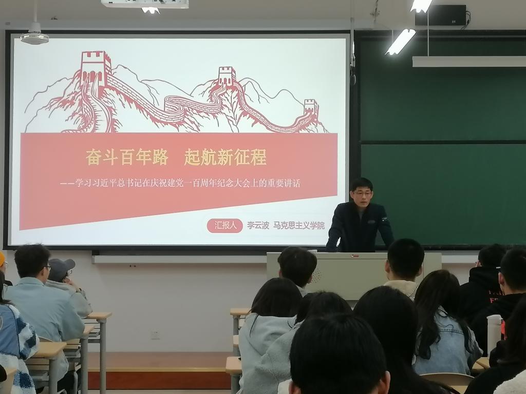 宣讲从“胸怀千秋伟业、恰是百年风华”、“深刻理解四个为了中华民族伟大复兴”和“把握九个必须、开创美好未来”三个方面展开。李云波指出“国家独立和人民解放”、“确立社会主义基本制度”、“经济改革和体制改革”和“创造新时代中国特色社会主义”这四个伟大成就对实现第一个百年奋斗目标具有重大意义。李云波为同学们深入解读了“九个必须”,他指出,“九个必须”是中国共产党过去100年来取得辉煌成就的宝贵经验,他鼓励同学们以史为鉴、开创未来,为实现第二个百年奋斗目标继续努力奋斗。
