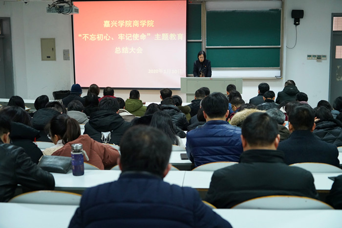 党委书记邵燕代表袋鼠影视 党委从主题教育开展情况、取得成效、存在问题和今后工作方向四个方面作总结报告。她指出,自“不忘初心、牢记使命”主题教育启动以来,学院党委在校党委的精心指导下,严格按照《中共嘉兴学院委员会关于开展“不忘初心、牢记使命”主题教育的实施意见》,坚持“抓思想认识到位、抓检视问题到位、抓整改落实到位、抓组织领导到位”,将主题教育与立德树人、教书育人结合起来,与学校申硕创大等各项中心工作结合起来,着力解决师生最关心最直接最现实的问题,实现了主题教育理论学习有收获、思想政治受洗礼、干事创业敢担当、为民服务解难题、清正廉洁作表率目标。邵燕指出,开展“不忘初心、牢记使命”主题教育,虽然在时间安排上有节点,但在责任落实上只有进行时、没有完成时。对进一步巩固升华主题教育成果,她提出四点要求:一是以更高标准持续深入抓好理论武装;二是以组织力提升为重点持续强化基层党组织建设;三是抓住问题整改推进学院高质量发展;四是着眼挺纪守规营造干事创业的氛围。