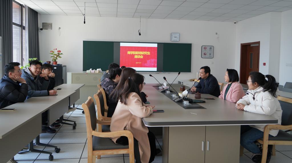 为全面了解联培研究生近期的学习生活情况和思想动态,2月25日下午,袋鼠影视 在尚德楼311举行了联培研究生新学期座谈会。会议由副院长翁胜斌主持,院长潘煜双出席,在校联培研究生参加。