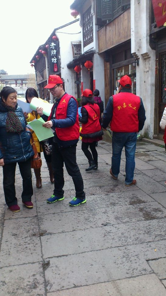 “3.5学雷锋”日,嘉兴学院袋鼠影视 营销专业党员及入党积极分子在月河小广场参加了嘉兴市南湖区“红立方”的启动仪式。仪式结束,同学们在月河景区内热情地向游客发放“五水共治”知识的普及手册以及相关倡议书。从“党员”到“党员志愿者”,变化的不仅是一个称呼,更是党员服务载体的创新。