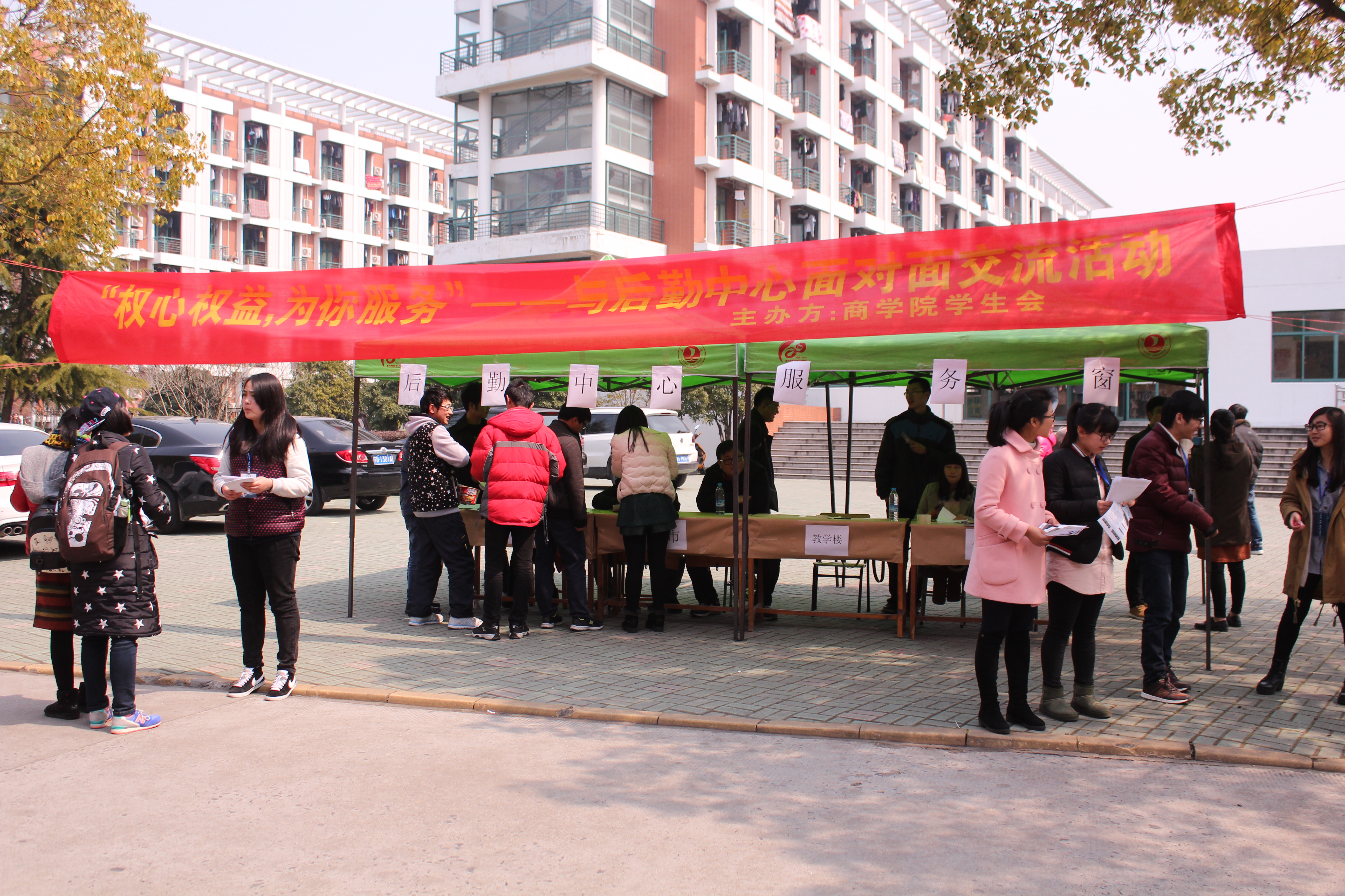 为了更好地提升学生自我服务,保障学生权益,袋鼠影视 团委学生会于3月12日中午在男生公寓二门口举办“权心权意为你服务”——与后勤中心面对面交流活动。