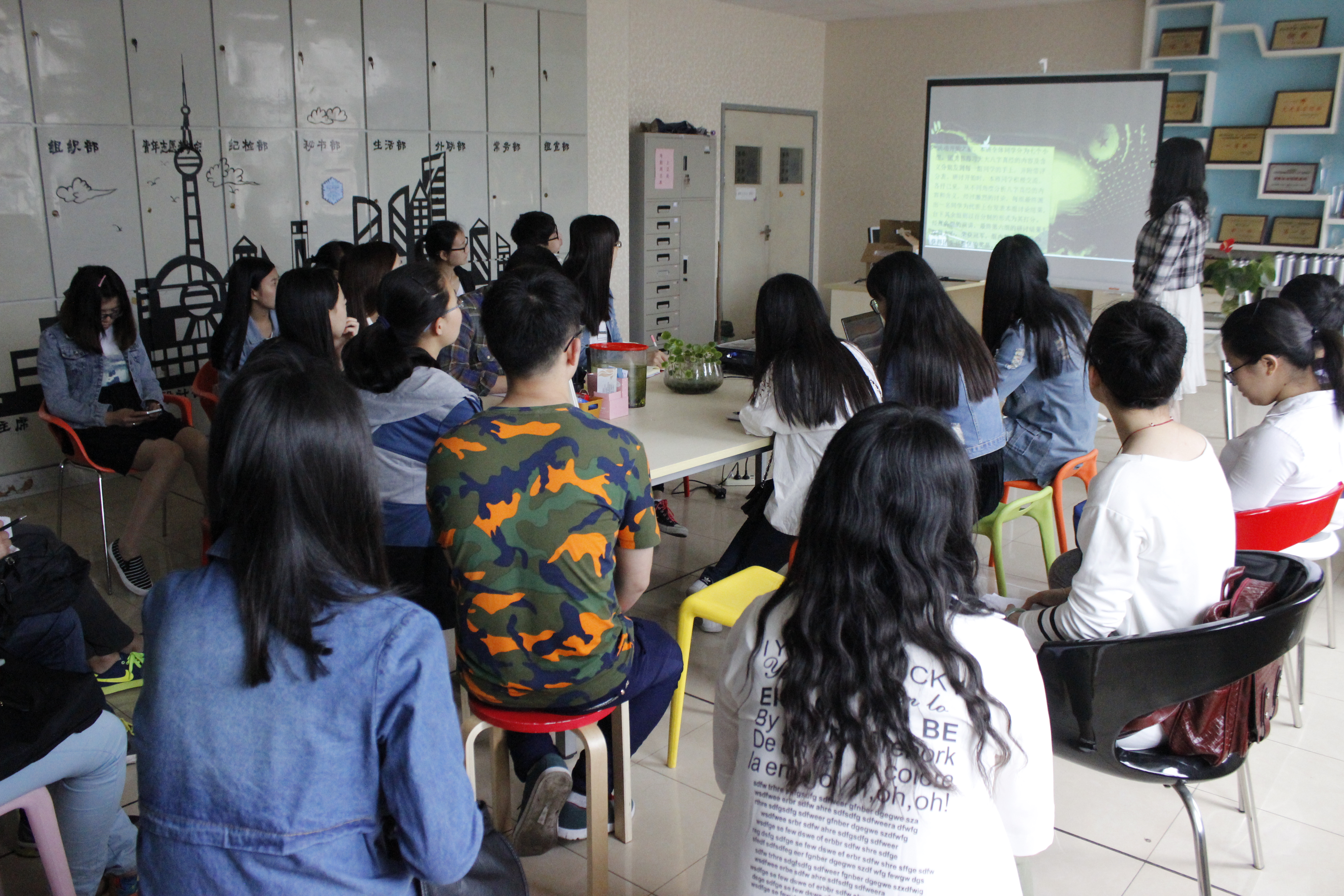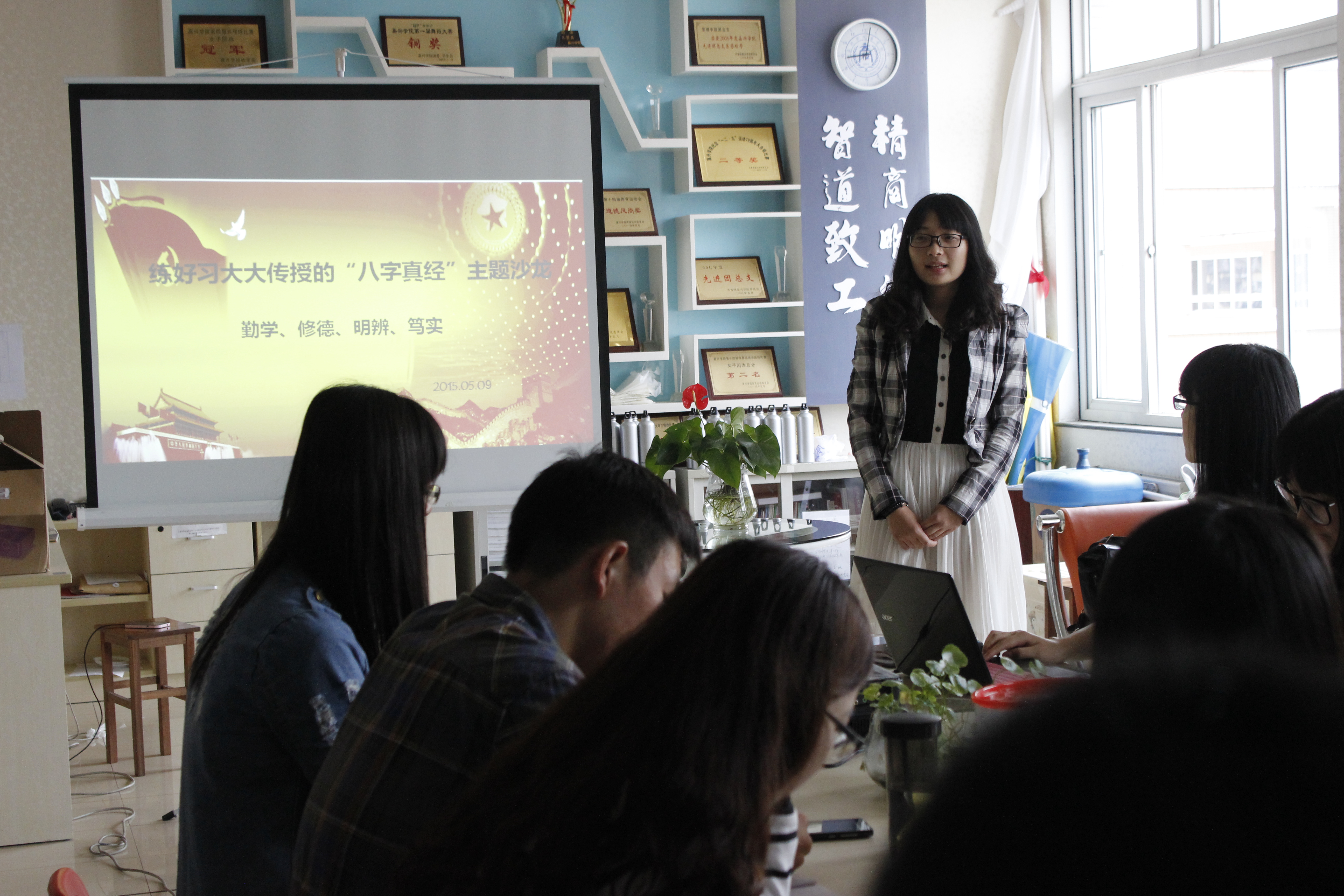 5月9日上午,袋鼠影视 团委在教一427举办了袋鼠影视 学习“八字真经”主题沙龙活动。出席主题沙龙的有学院团委副书记阮鋆燕、办公室主任刘俊、青协副会长杨莹莹、以及来自五个班级团支部的18位学习代表。