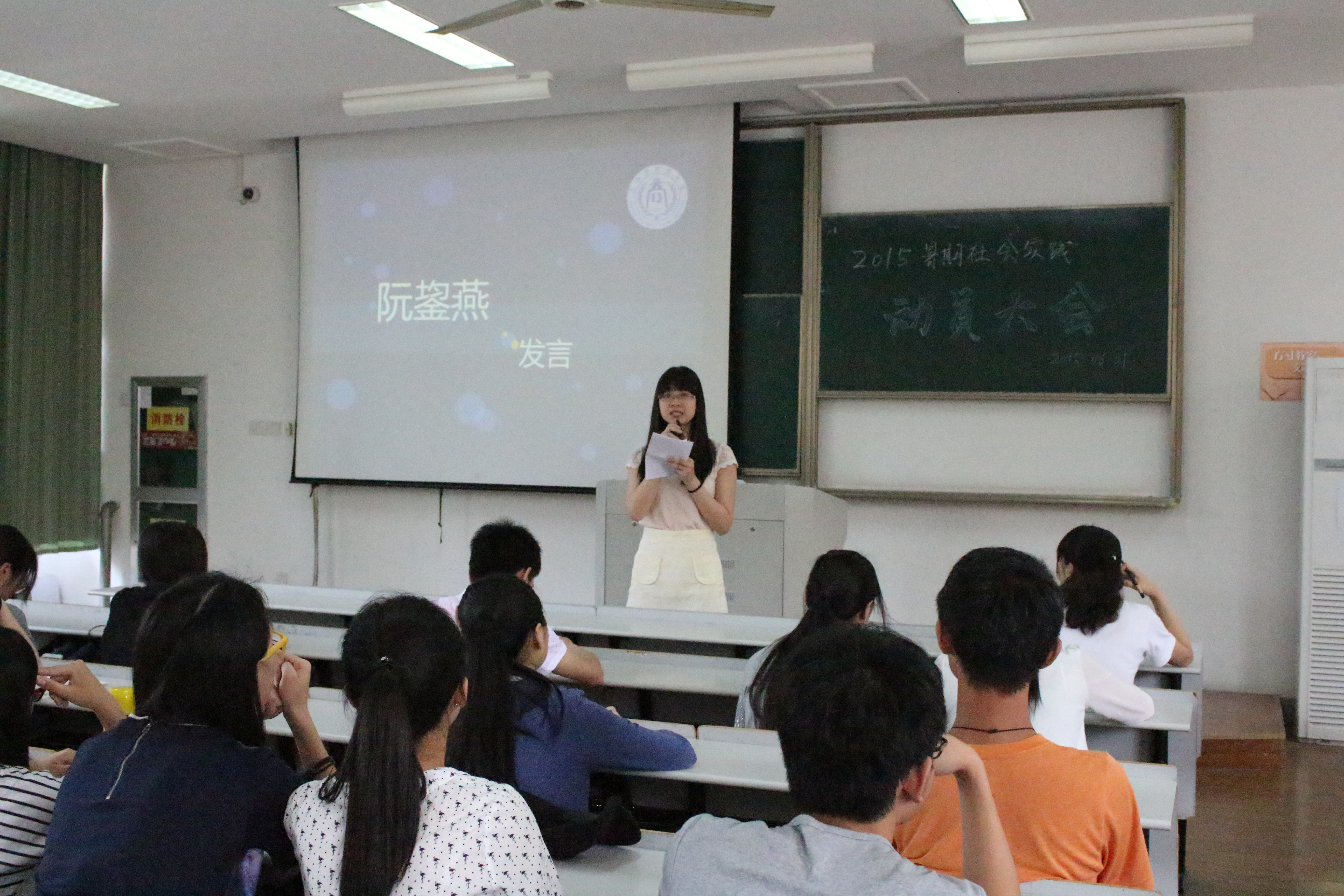6月1日中午12:30在教二A222,院团委组织部开展了学生组织暑期社会实践的动员大会,学院团委副书记阮鋆燕同学、学生会主席团、学院社团负责人以及学生会全体14级成员参加了本次大会。