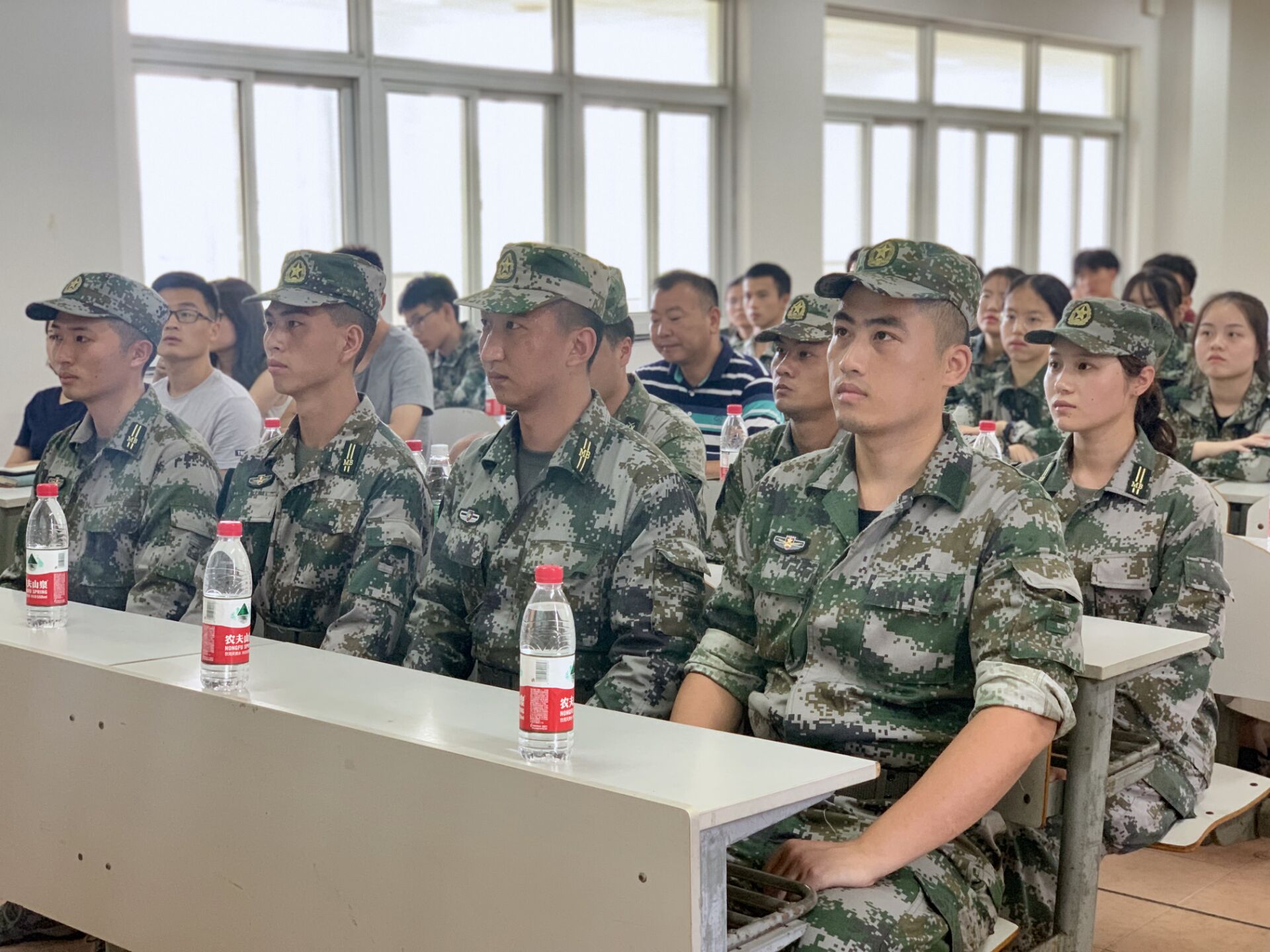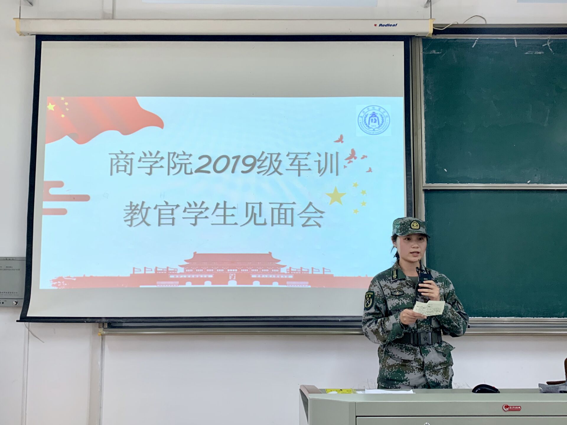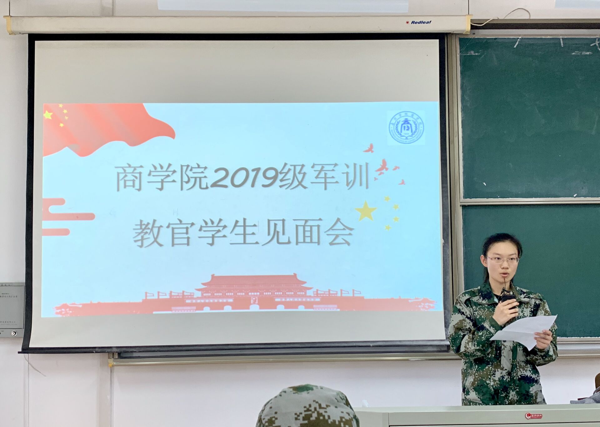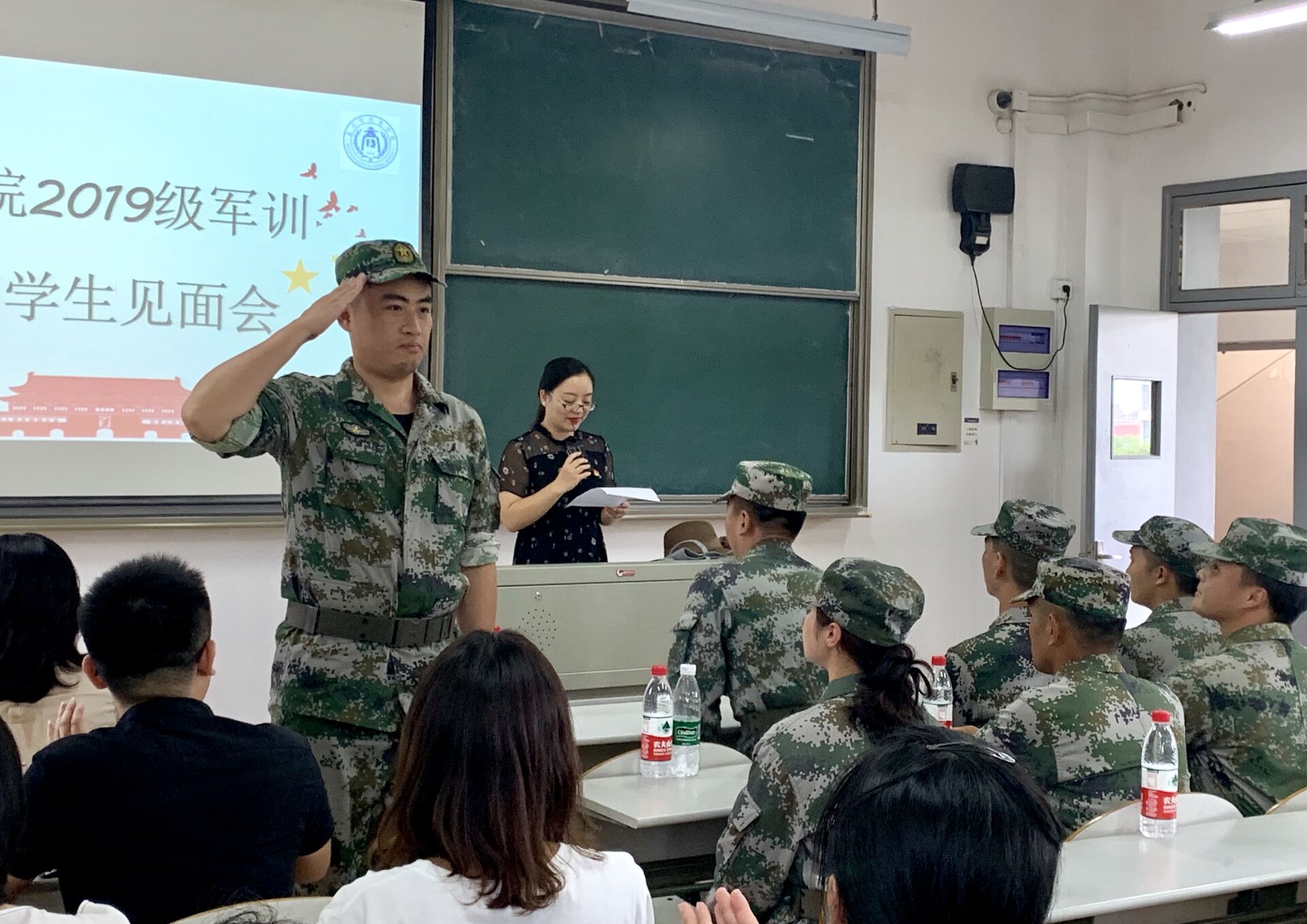 2019级新生军训教官学生见面会在教一举行。此次见面会旨在联络教官、指导员老师和各排副排长、卫生员,并对新生军训提出相应的要求。