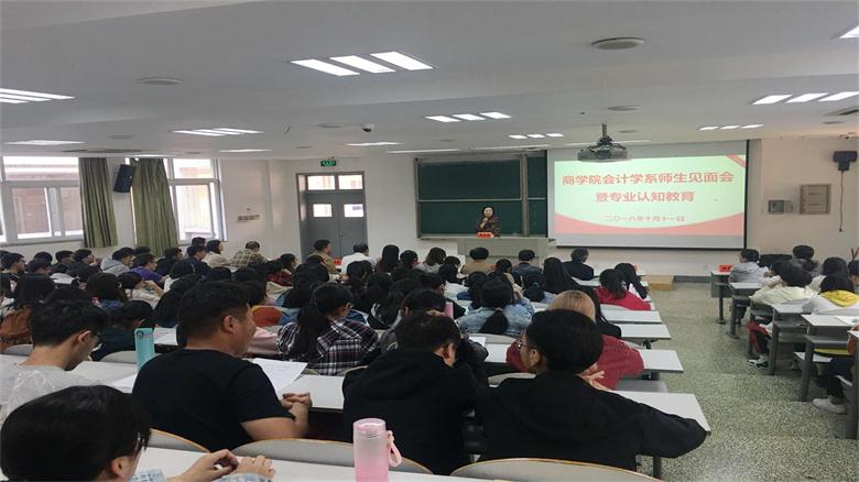 会计学系2018级师生见面会暨专业认知教育在教一253举行。学院院长、会计学专业负责人潘煜双教授,会计学系全体专任教师、辅导员、助理辅导员和2018级新生参加见面会。会计学系主任崔晓钟主持见面会。